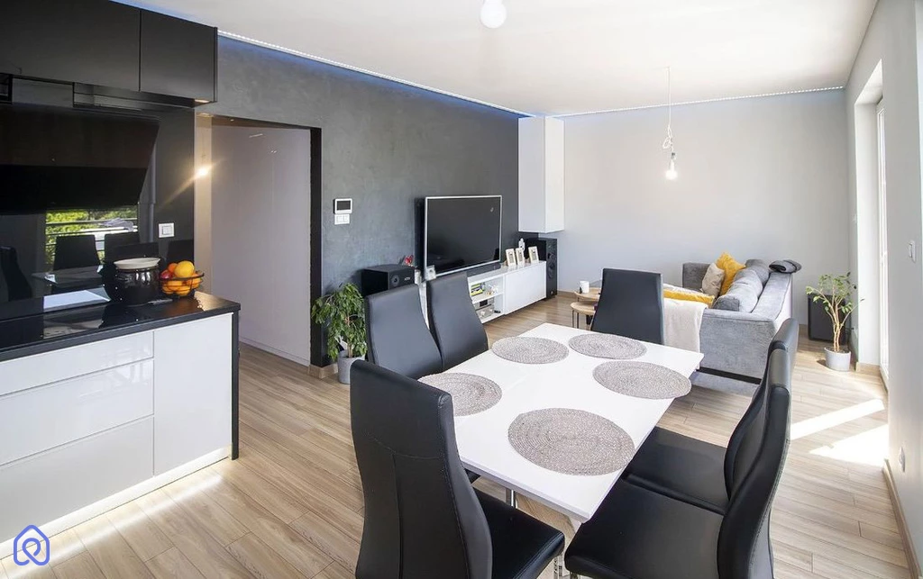 Apartament wykończony w wysokim standardzie, z dobrych materiałów wykończeniowych i dużą starannością o wszystkie detale. Zastosowano także, szereg innowacyjnych rozwiązań w zakresie, oświetlenia LED we wszystkich pomieszczeniach, podwieszanych sufitach, oświetleniach punktowych w łazienkach, dodano także oświetlenie ozdobne, rolety zewnętrzne, drzwi antywłamaniowe. W całym apartamencie została zamontowana klimatyzacja, która jest regularnie serwisowana. Bezpośrednio przed budynkiem są dwa miejsca postojowe. Media - ogrzewanie i ciepła woda, piec dwu funkcyjny gazowy, zimna woda, kanalizacja, energia, miejskie. W cenie nieruchomości pozostają wszystkie meble i wyposażenie widoczne na zdjęciach.