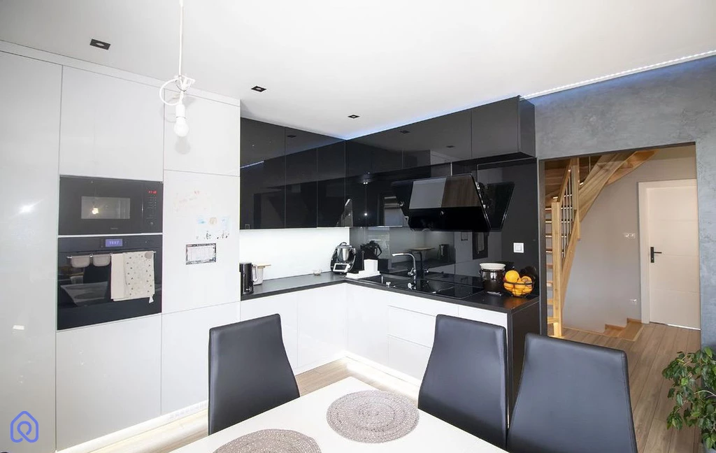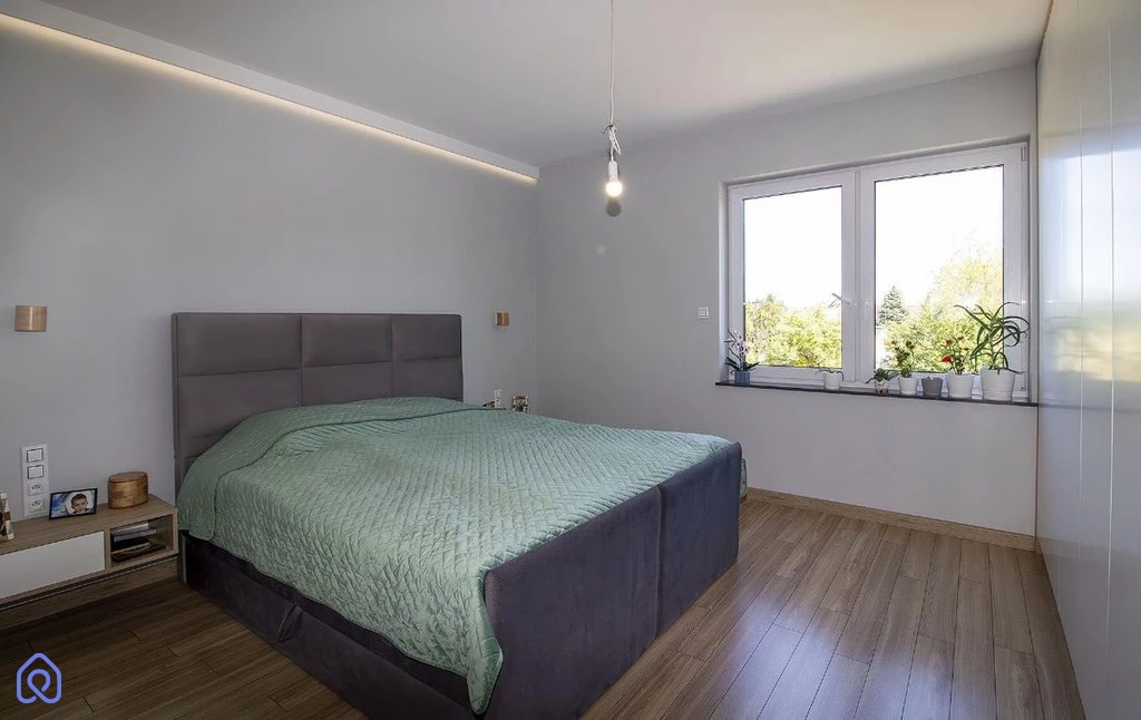 Budynek oddany do użytkowania w 2022 roku o powierzchni użytkowej 75,03m2, po podłodze ok 125 m2. Część dzienna parteru obejmuje otwartą przestrzeń, w ramach której znajduje się ustawny salon, jadalnia z wyjściem na taras o powierzchni około 4,5 m2 zadaszony markizą, dwa pokoje, dużą łazienkę z wanną i p. pokój . Piętro to bardzo funkcjonalne poddasze, na którym jest sypialnia małżeńską z osobistą garderobą, dwa ustawne pokoje dla dzieci oraz wygodna łazienka z nowoczesnym prysznicem oraz duży przedpokój.