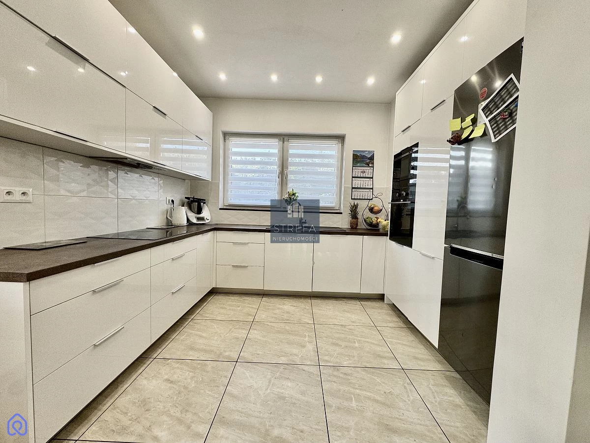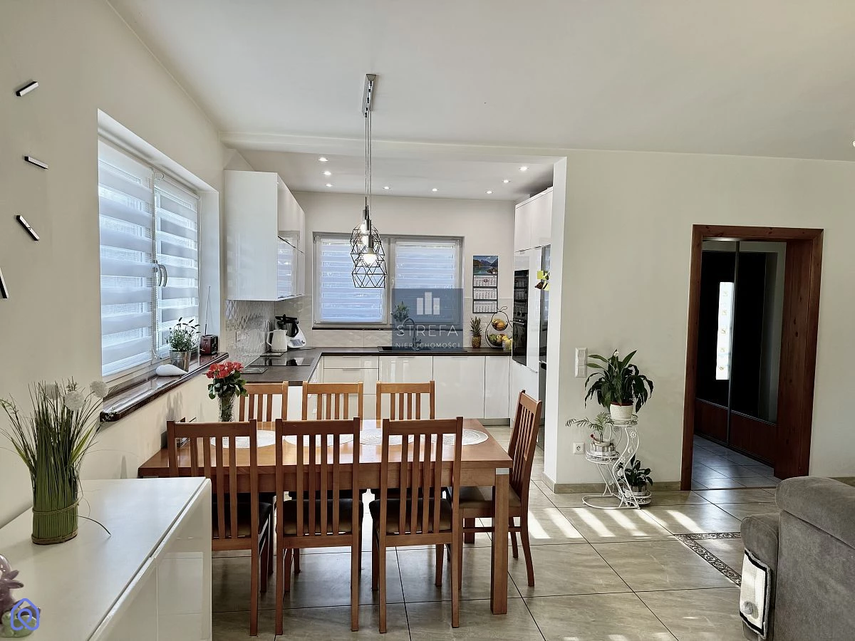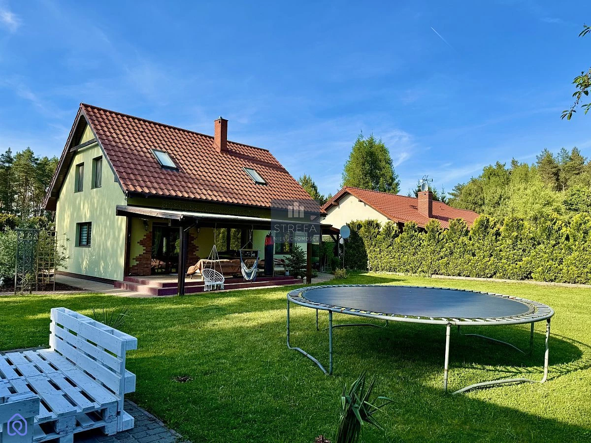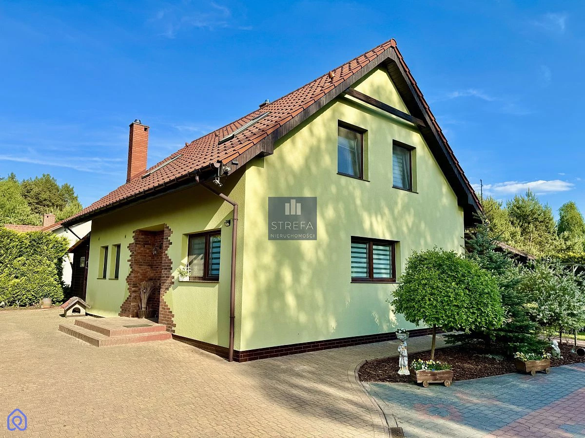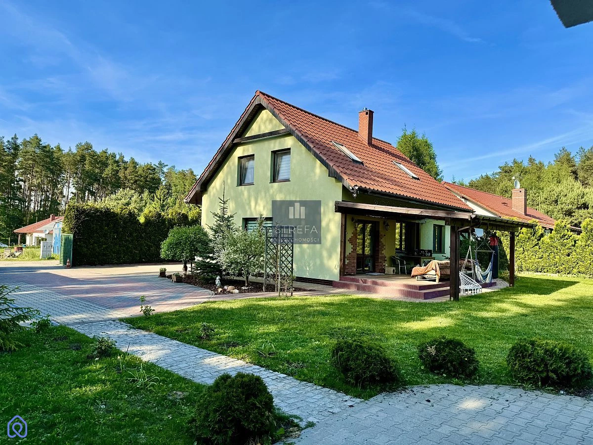 Zapraszamy do zapoznania się z ofertą pięknego domu wolnostojącego zlokalizowanego w miejscowości Wirów pod Gryfinem! Dom o powierzchni użytkowej 112,90 m2 (powierzchnia całkowita to 141,20 m2) został wybudowany w 2015 roku, na ładnie zagospodarowanej działce o powierzchni 1000 m2, a w jego skład wchodzą: Na pierwszej kondygnacji: salon z jadalnią - 30,10 m2 kuchnia - 9,2 m2 gabinet - 11,10 m2 łazienka - 3,90 m2 hol + schody - 7,90 m2 pomieszczenie gospodarcze - 5,30 m2 sień - 4,20 m2 Na piętrze: pokój - 11,60 m2 pokój - 11,10 m2 pokój - 7,1 m2 łazienka - 5,60 m2 hol - 5,8 m2 Dom jest położony w doskonałej lokalizacji dla osób ceniących sobie ciszę i spokój, jednocześnie z dobrą komunikacją z Gryfinem i Szczecinem. Wokół lasy, oraz jezioro z plażą. Wjazd na posesję wyłożony jest polbrukiem, łącznie z miejscami do parkowania samochodów. Przed wyjściem na ogród znajduje się zagospodarowany i zadaszony taras. Na działce poza pięknymi nasadzeniami znajduje się również domek letniskowy o powierzchni 35 m2. Ogrzewanie własne - piec na węgiel lub drewno. Zachęcamy do osobistej weryfikacji oferty! Planujesz zakup nieruchomości w kredycie hipotecznym, ale nie wiesz czy go otrzymasz? Skontaktuj się z nami, nasi doradcy pomogą Ci w załatwieniu formalności bez dodatkowych kosztów.