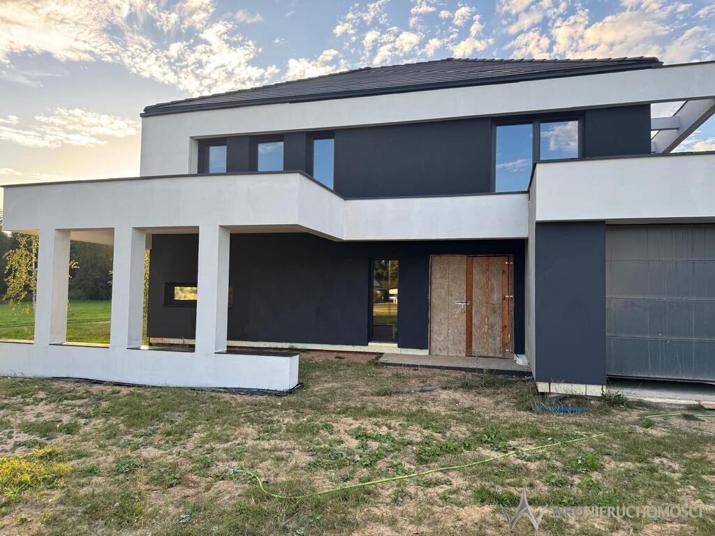 Przedstawiam Państwu na sprzedaż realizację podmiejskiej willi o powierzchni 230m2 z obszernym garażem, dachem kopertowym i tarasami.
