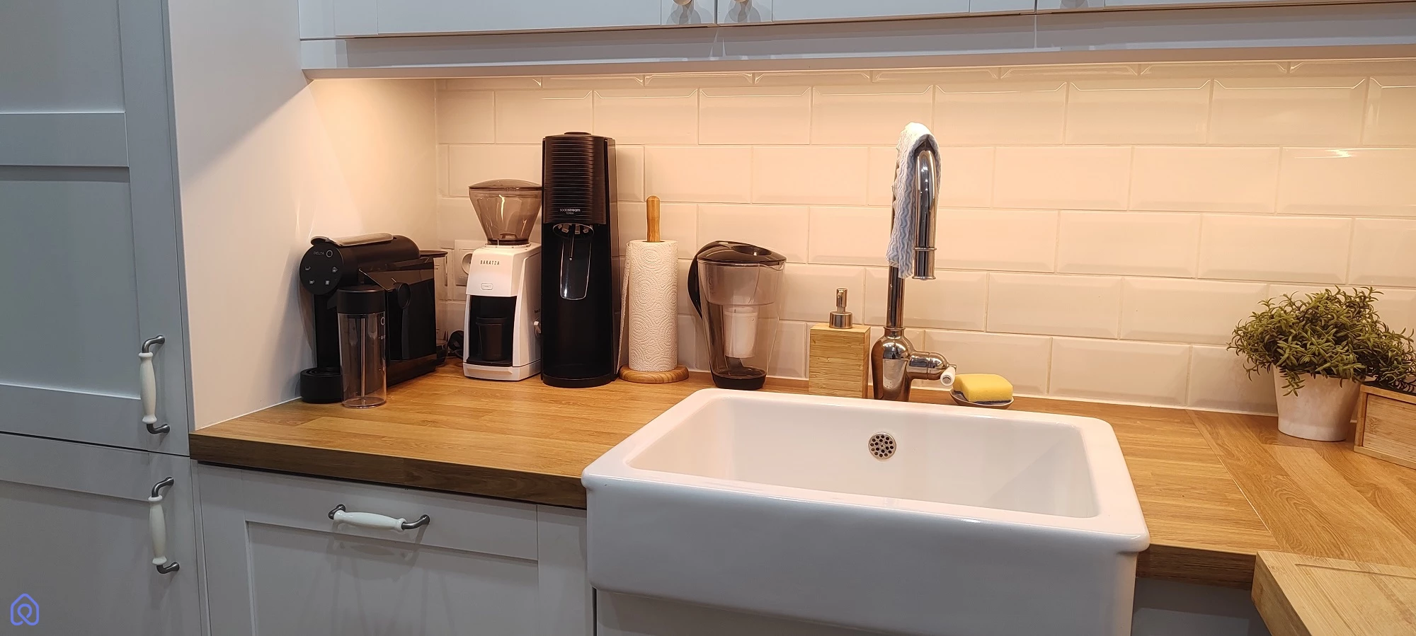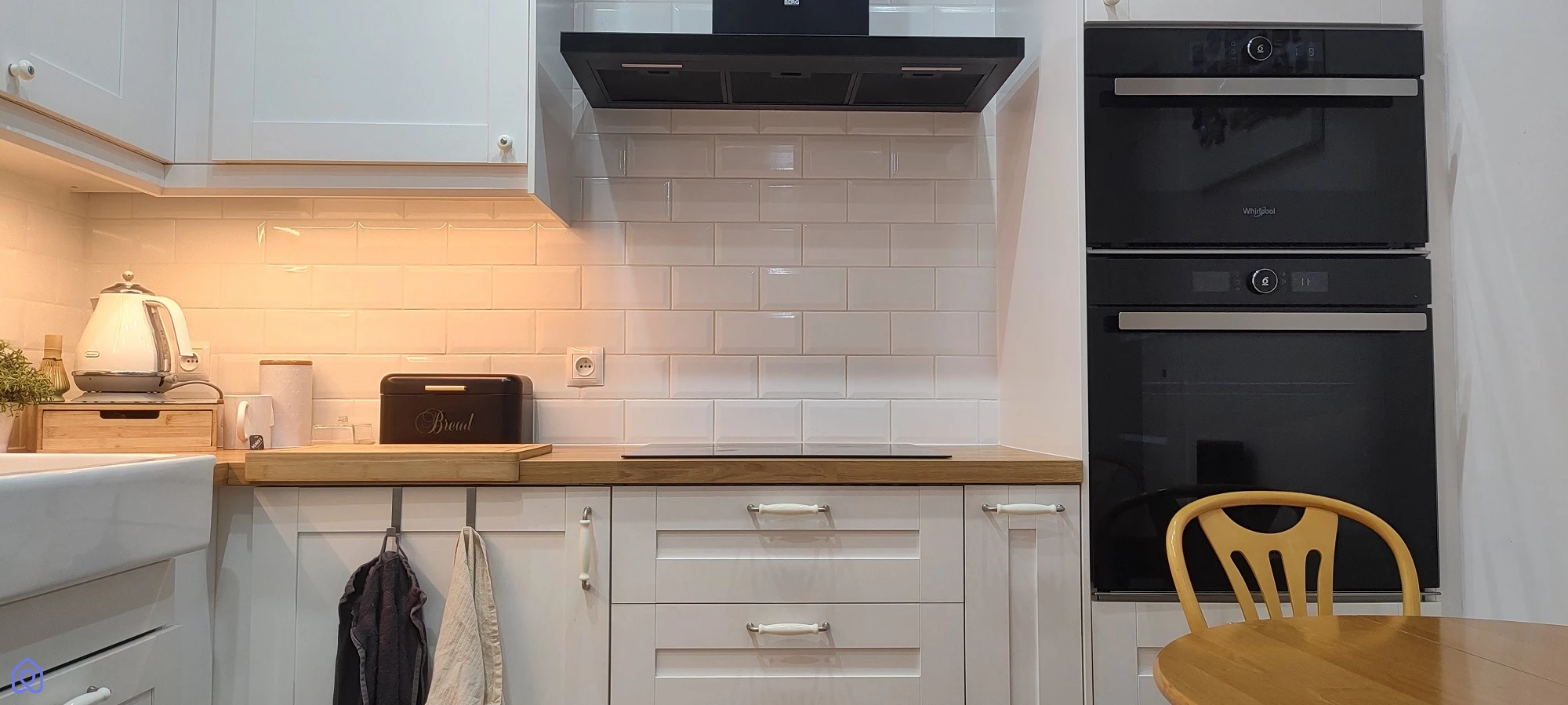 Mieszkanie w pełni wyposażone: lodówka, piekarnik, płyta indukcyjna, mikrofalówka, pralka, suszarka, odkurzacz, pełne wyposażenie kuchni. Szybki internet w cenie.