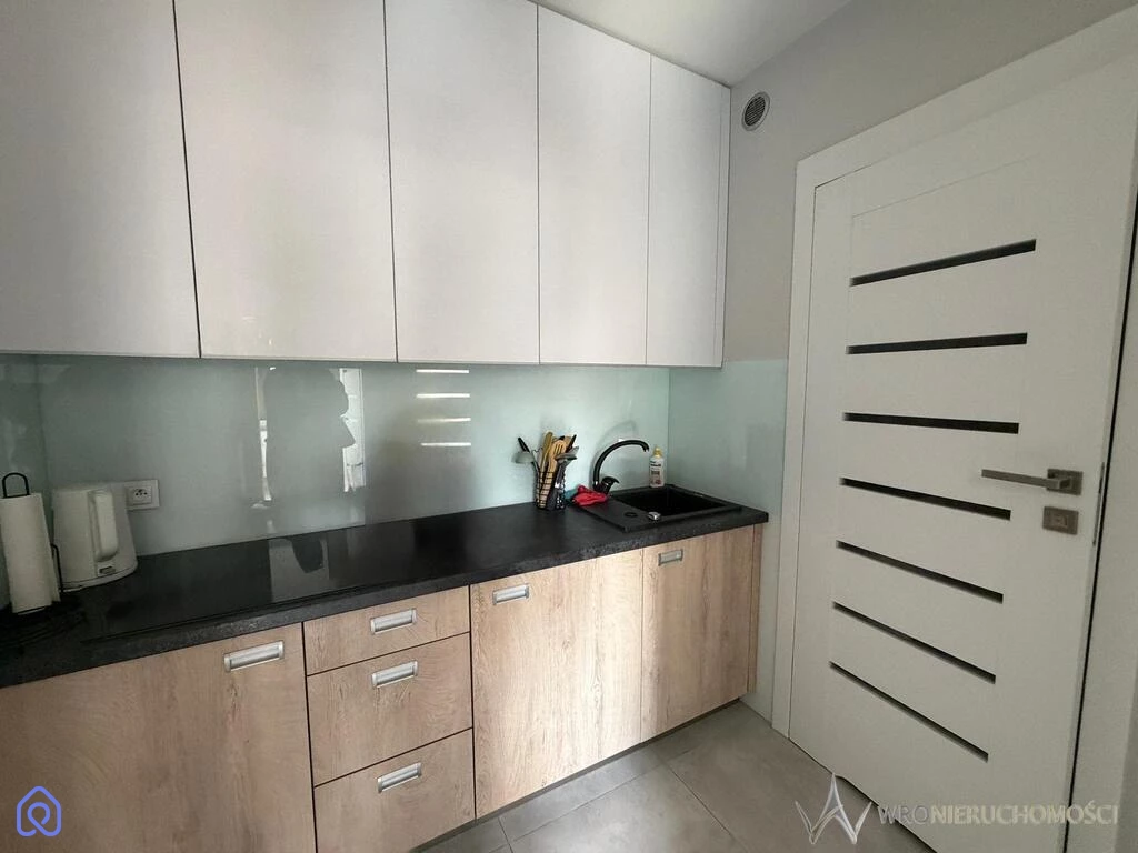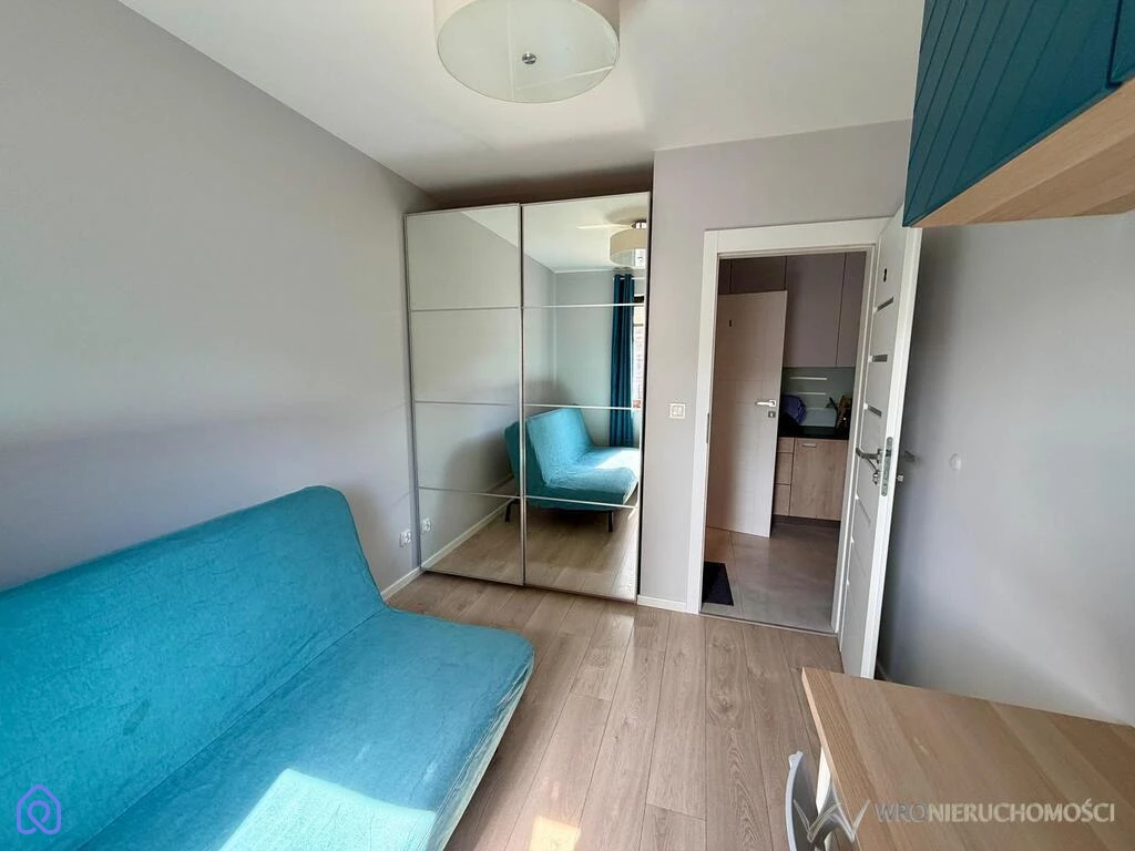 przedpokój z dużą, pojemną szafą dwa osobne pokoje wyposażone w rozkładane sofy i szafy kuchnia w zabudowie z płytą indukcyjną i lodówką łazienka z kabiną prysznicową oraz pralką Bosch Mieszkanie jest w pełni umeblowane i gotowe do zamieszkania.