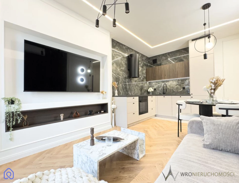 Lokal jest w pełni umeblowany i wyposażony – sprzedawany wraz z całym widocznym na zdjęciach wyposażeniem, co pozwala na natychmiastowe wprowadzenie się lub szybkie rozpoczęcie wynajmu.