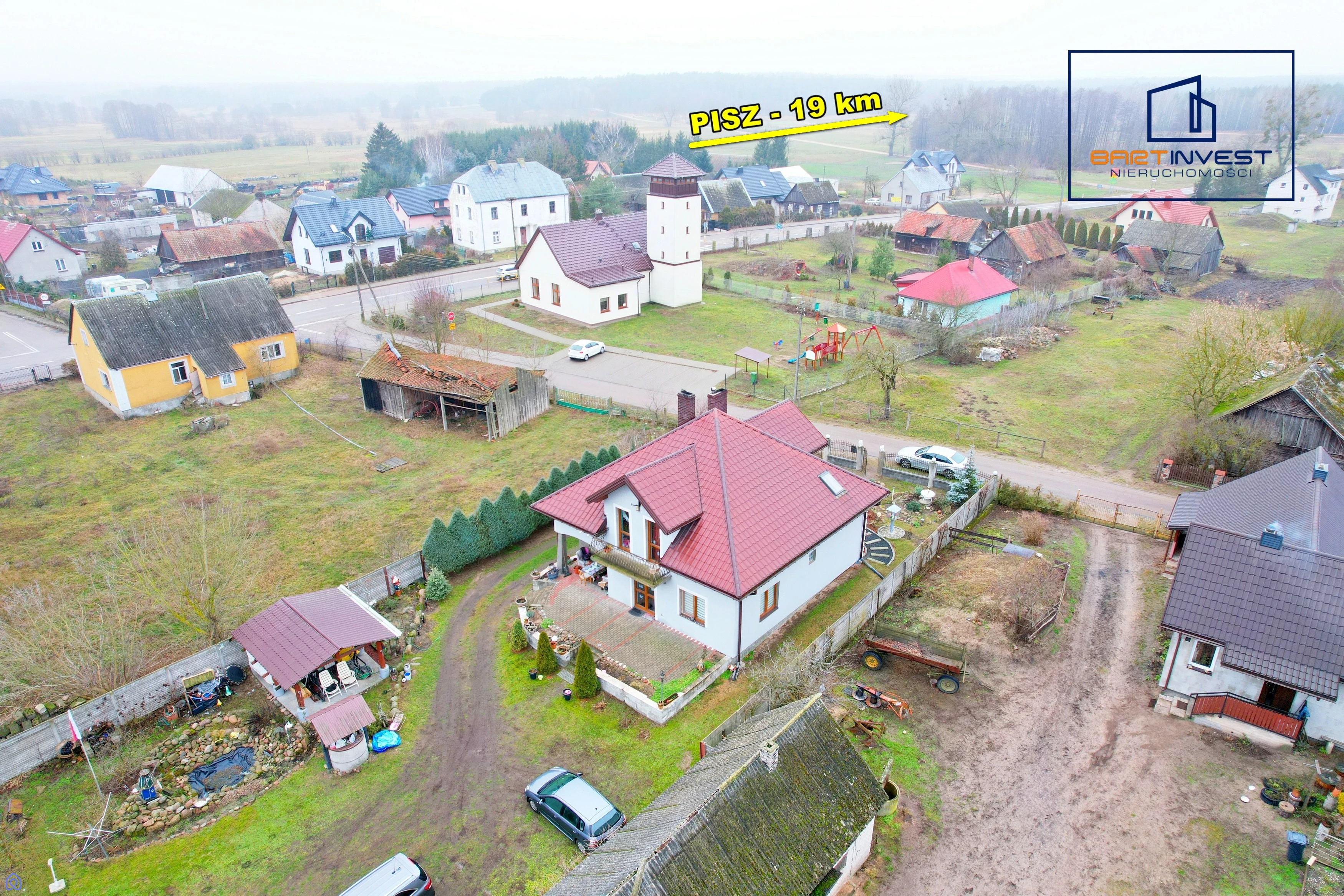 Tylko 7 km od Kolna i 19 km od Pisza – wygodny dostęp do sklepów, szkół i innych udogodnień.