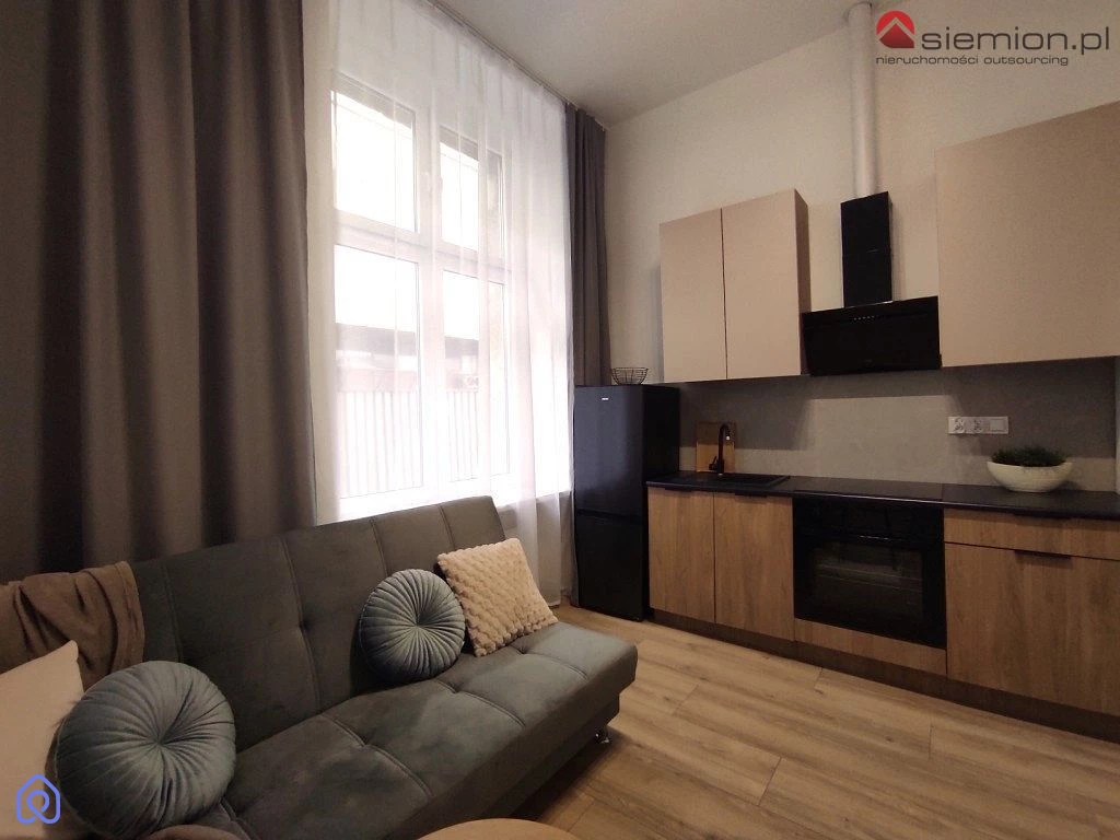 Okazja! Polecamy do wynajmu przytulne mieszkanie o powierzchni 16 m2 położone na wysokim parterze 3-piętrowego budynku przy ulicy Fitznerów w centrum Siemianowic Śląskich, składające się z 1 pokoju połączonego z aneksem kuchennym oraz łazienki z WC. Budynek z monitoringiem oraz ochroną przed którym jest możliwość parkowania samochodu. Mieszkanie po remoncie. Wszystkie instalacje nowe. Okna plastikowe. Ogrzewanie centralne z sieci lokalnej (własna kotłownia). Ciepła woda z bojlera elektrycznego. Drzwi wejściowe do mieszkania ognioode. Mieszkanie umeblowane i wyposażone w meble kuchenne wraz ze sprzętem lodówko-zamrażarka, płyta elektryczna, piekarnik elektryczny oraz okap, meble łazienkowe wraz z pralką, sofę, stolik z krzesłami oraz szafę. Miesięczny czynsz najmu w wysokości 1100zł. Dodatkowo płatne woda, prąd, ogrzewanie oraz wywóz nieczystości.Kaucja w wysokości 2500zl. Niewątpliwym atutem mieszkania jest lokalizacja. W pobliżu liczne sklepy, punkty usługowe, przychodnia, szpital, szkoła, przedszkole, przystanki komunikacji miejskiej. Niedaleko również dostęp do linii tramwajowej oraz terenów zielonych m.in. Park Miejski. Zapraszamy do kontaktu z naszym Pośrednikiem. Zadzwoń i umów się na spotkanie! Treść niniejszego ogłoszenia nie stanowi oferty handlowej w rozumieniu Kodeksu Cywilnego. Treść ma charakter informacyjny i została przygotowana na podstawie informacji uzyskanych od właściciela nieruchomości, W przypadku zainteresowania ofertą dokonamy pełnej weryfikacji. Kontaktując się z biurem Klient wyraża zgodę na przetwarzanie danych osobowych zgodnie z przepisami ustawy z dnia 29 sierpnia 1997 roku o ochronie danych osobowych / Dz.U.Nr. 133 poz. 883/. Klientowi przysługuje prawo do wglądu do swoich danych osobowych i ich aktualizacji. Administratorem danych jest Siemion.pl sp. z o.o. z siedzibą w Siemianowicach Śląskich.
