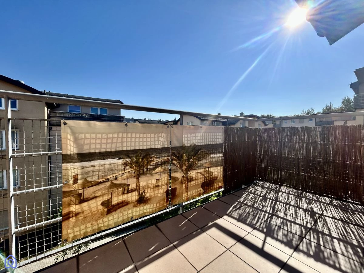 Znajduje się na trzecim zarazem ostatnim piętrze budynku, posiada również balkon o powierzchni 7 m2 z widokiem na zieleń i sąsiedztwo. Idealny na śniadanie lub relaks w pogodne dni.