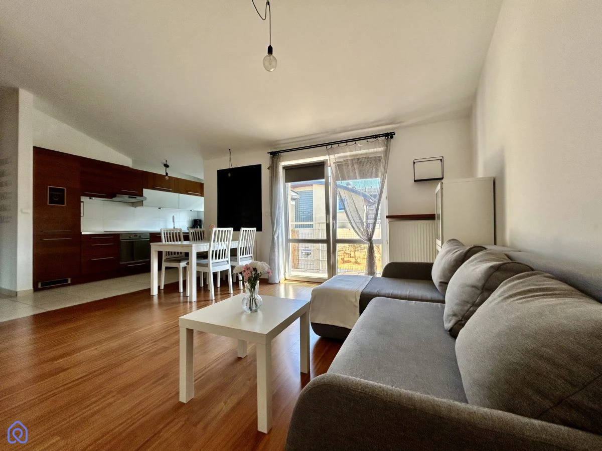 Jest kompletnie umeblowane, a także wyposażone w niezbędne sprzęty. Oznacza to, że możecie się Państwo wprowadzić i rozpocząć życie w nowym miejscu od razu, bez konieczności zakupu dodatkowych mebli czy urządzeń AGD.