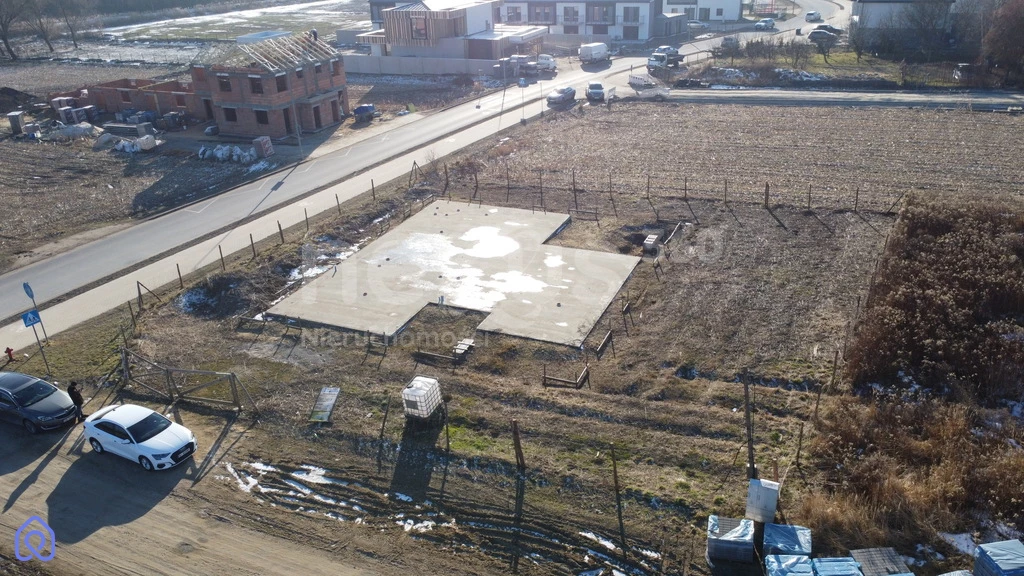 Działka ma 972 m2, kształt prostokąta.. Na działce są już fundamenty.