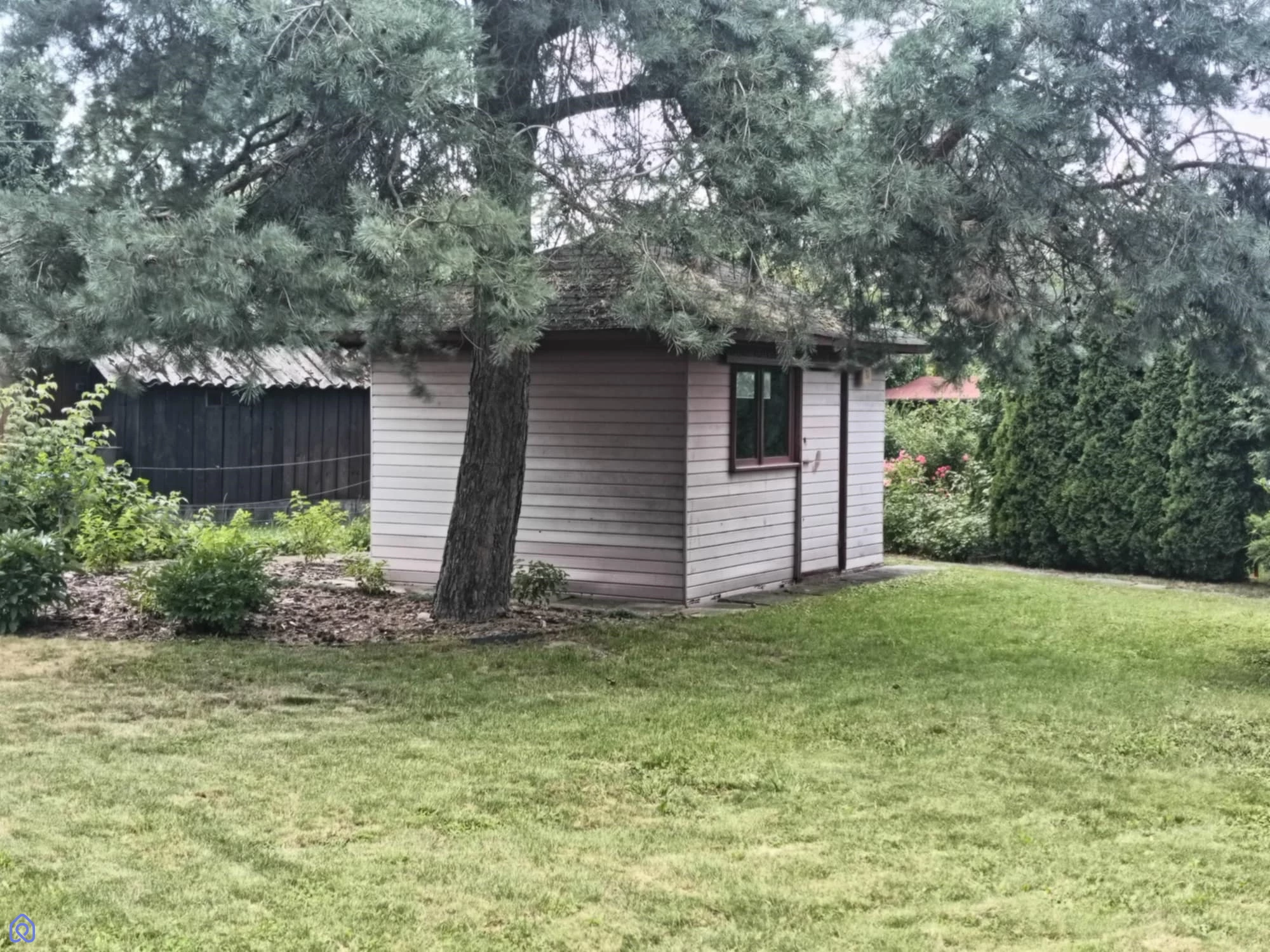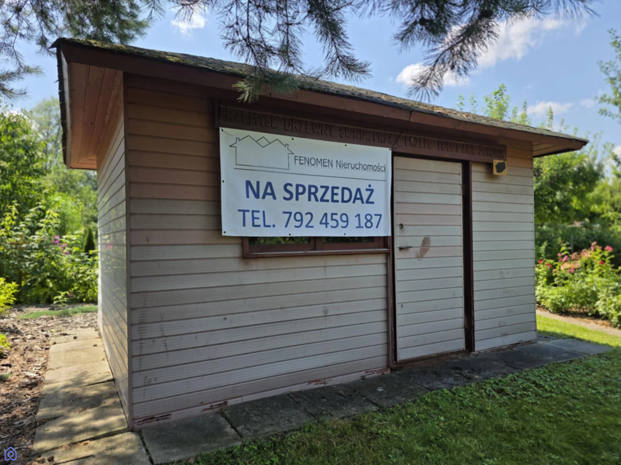 Na działce znajduje się mały domek rekreacyjny o powierzchni około 10 m², który świetnie sprawdzi się jako miejsce do wypoczynku lub przechowywania sprzętu.