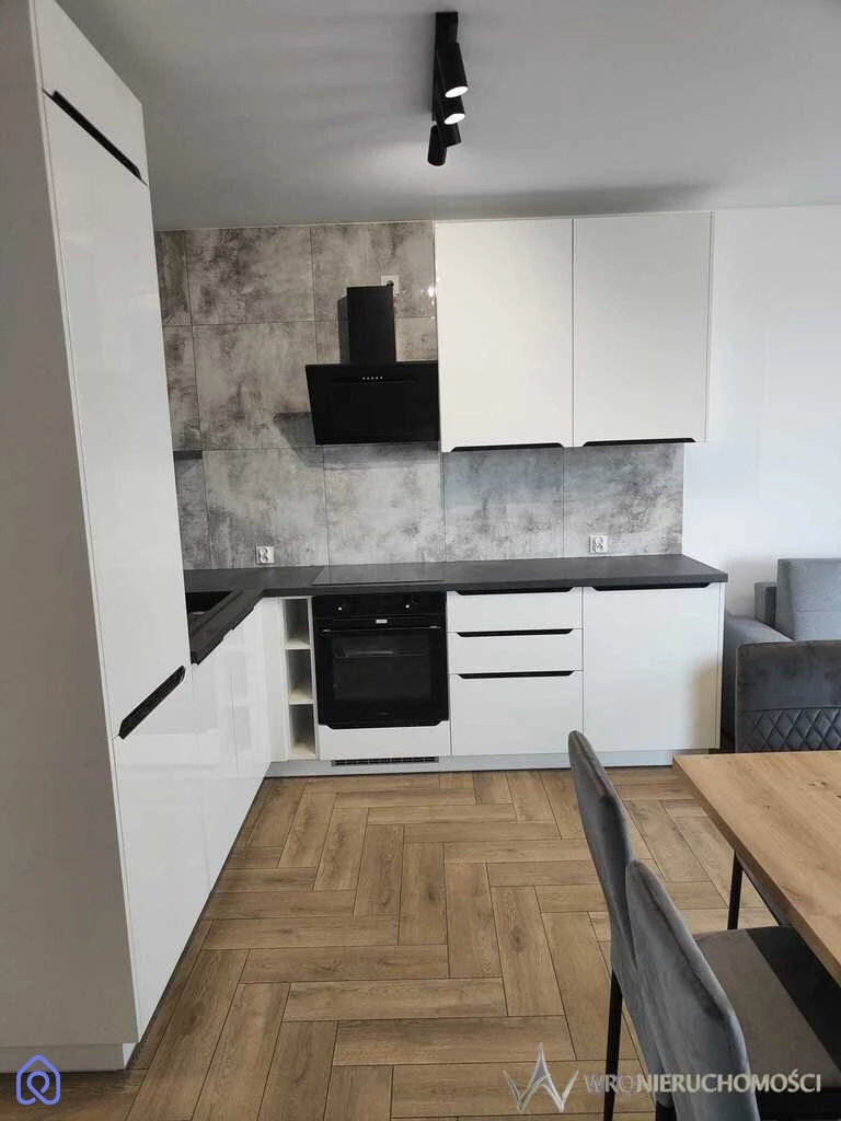 Mieszkanie jest w pełni wyposażone. W aneksie kuchennym znajduje się kompletna zabudowa wraz z piekarnikiem, okapem, zmywarką oraz płytą indukcyjną.