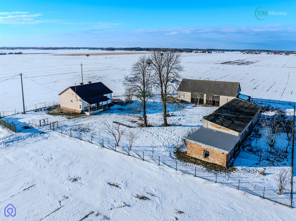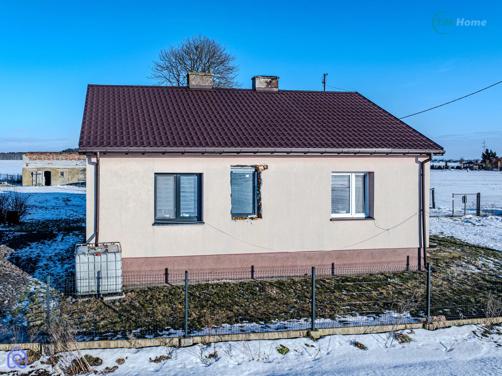 Na działce znajduje się dom z o powierzchni około 85 m². Budynek ogrzewany ..............kryty blachą. Na powierzchnię składa się z czterech pokoi, kuchni, łazienka oraz przedpokój. Do dyspozycji jest także strych, który można zaadaptować na dodatkową przestrzeń mieszkalną lub magazynową.