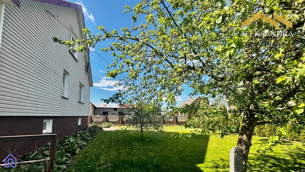 Działka jest starannie zadbana, z gęstym trawnikiem, który podkreśla jej estetykę. Przed domem znajduje się ogródek z drzewkami owocowymi - agrest, jabłoń, czereśnia – które w sezonie zapewniają świeże owoce. Gleba na działce jest żyzna, idealna do uprawy warzyw, co stanowi świetną opcję dla osób ceniących własne, zdrowe plony. Na końcu działki rozciąga się prywatny las, pełen pięknych drzew, tworzący zaciszny, naturalny zakątek. Na posesji znajduje się również duża murowana stodoła, w której są pomieszczenia gospodarcze oraz garaż jednostanowiskowy.