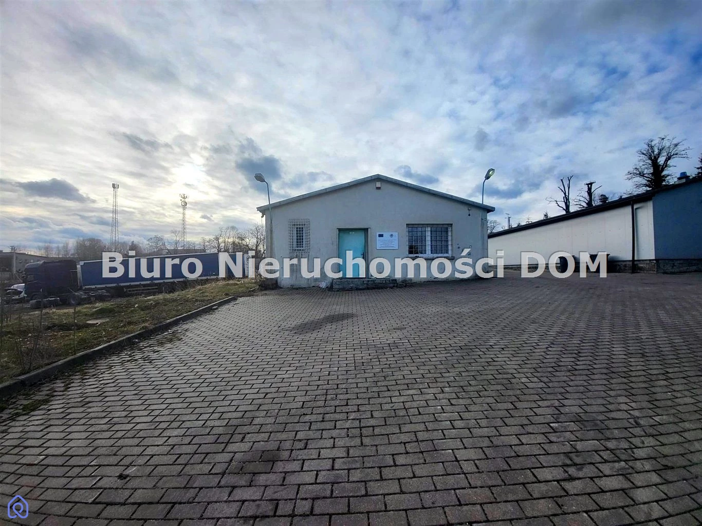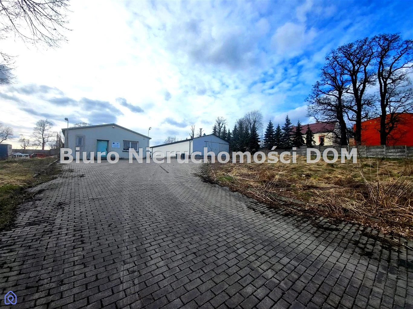Teren utwardzony, zabudowany 2halami:murowaną halą magazynową o powierzchni 369 m²,halą stalową obudowaną blachą o powierzchni 341 m².Wysokość hal ok. 3,5 m. Duży przydział mocy – 150 kW z możliwością zwiększenia.