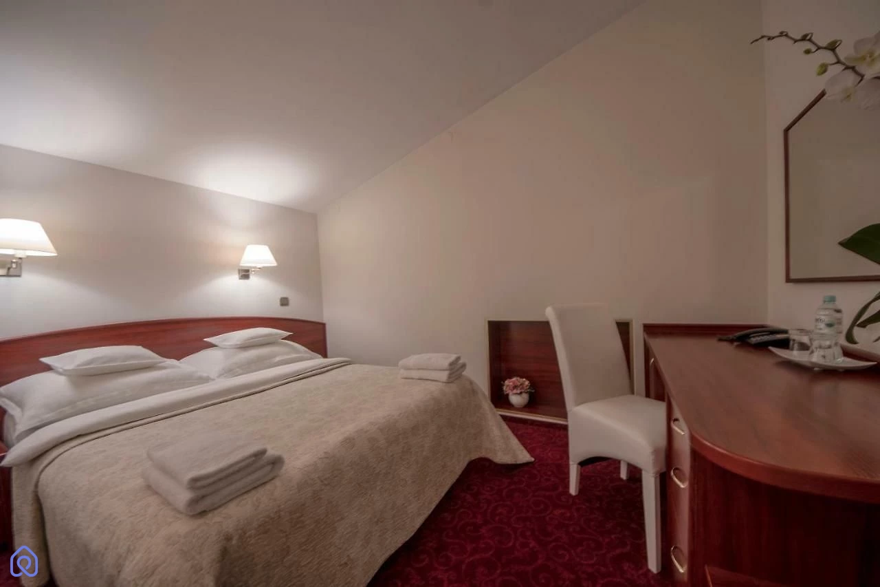 Hotel o powierzchni 1233,34 m2, w którym znajdują się 34 pokoje hotelowe wraz z łazienkami, sala restauracyjna, sala konferencyjna i inne pomieszczenia socjalne.