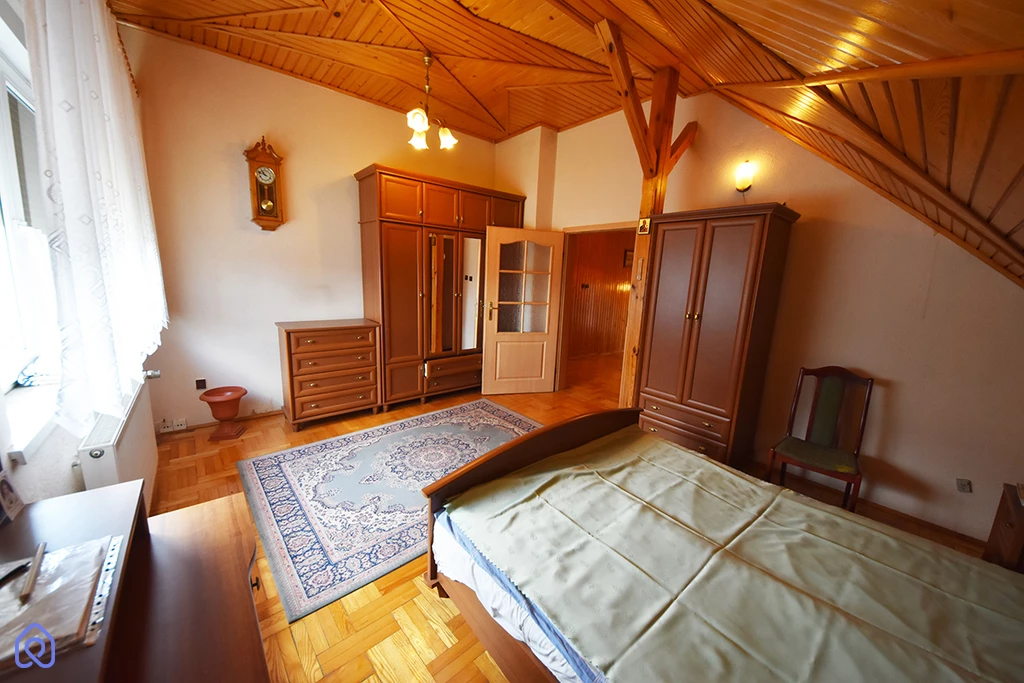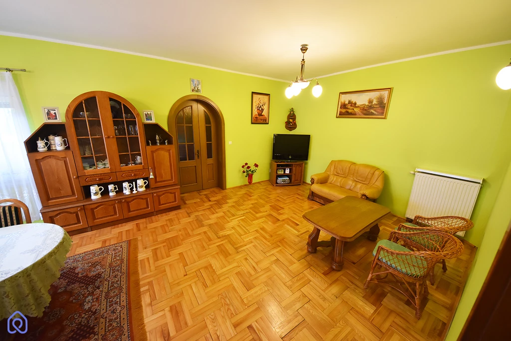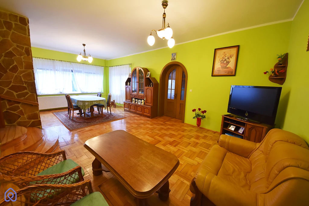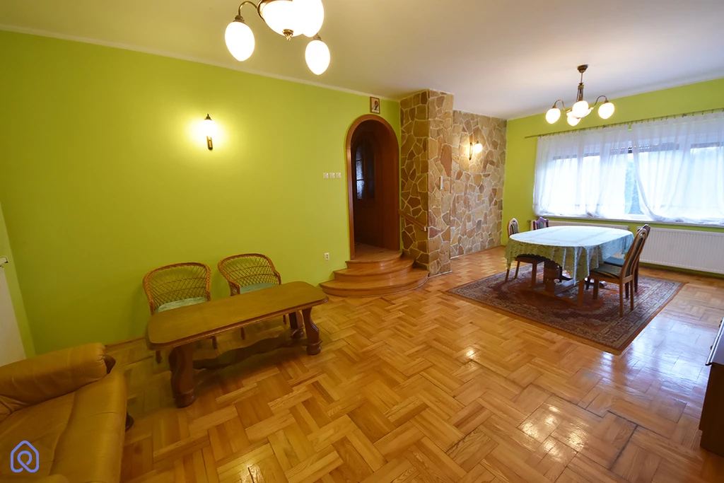 Standard wykończenia: dobry do zamieszkania lub własnej aranżacji, zmiany stylu, podłogi mozaika parkietowa, parkiet, ściany i sufity tynki, boazeria, kuchnia umeblowana wraz sprzętem AGD, łazienki wykafelkowane, wyposażone w wannę , kabinę prysznicowe, umywalki, lustra, meble łazienkowe. Stolarka drzwiowa drewniana, okienna PCV (okna dwuszybowe) z roletami. Dom wybudowany w technologii tradycyjnej, ściany zewnętrzne z cegły pełnej ocieplone styropianem, dachówka ceramiczna. Instalacja elektryczna, wodno - kanalizacyjna, centralnego ogrzewania. Całość posesji ogrodzona, dojścia i podjazd - kostka brukowa, własna studnia, zagospodarowana, nasadzenia kwiaty, krzewy,drzewa.