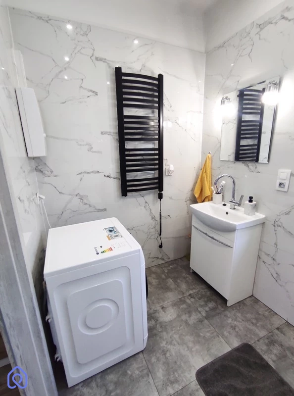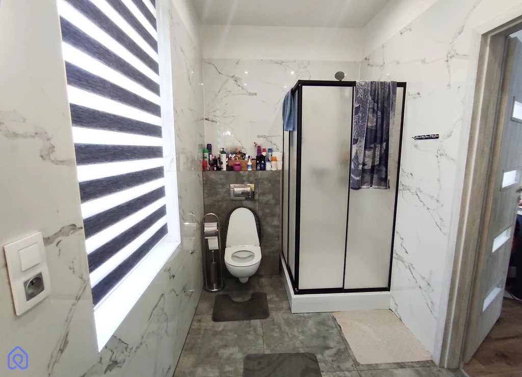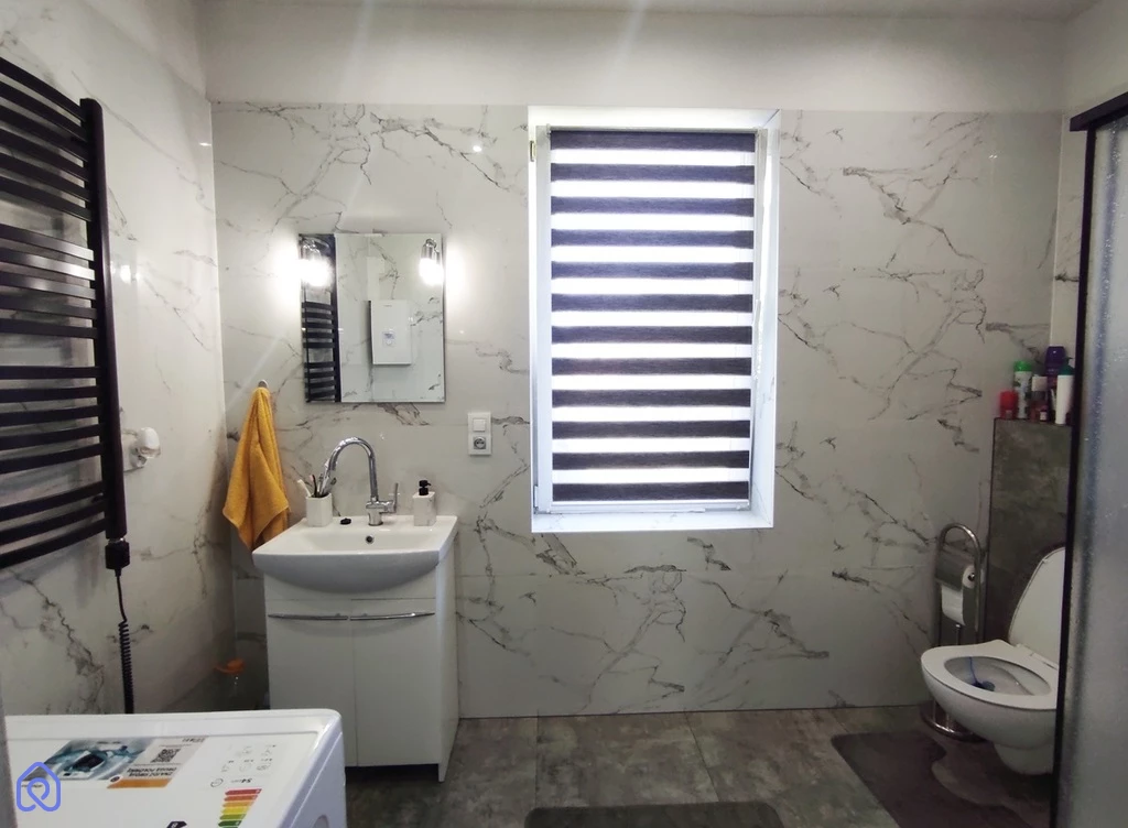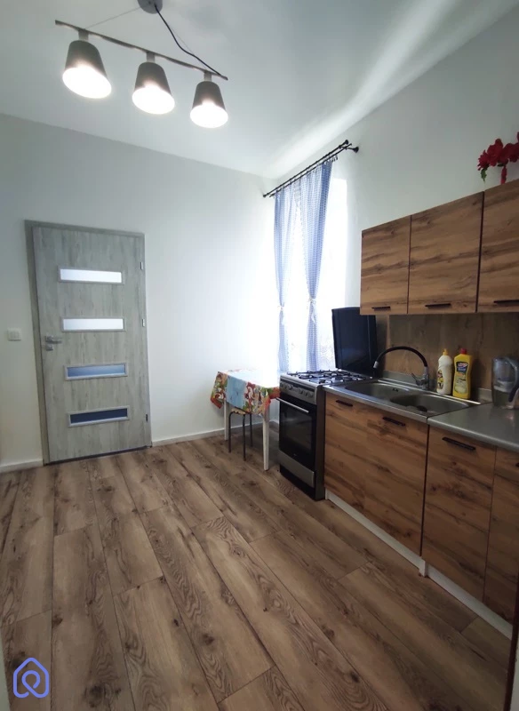 Po remoncie w 2023r jest łazienka, kuchnia oraz pokój duży. W pozostałych pokojach i kuchniach, podłogi drewniane z desek oraz paneli. W holu na parterze posadzka z płytek terakota.