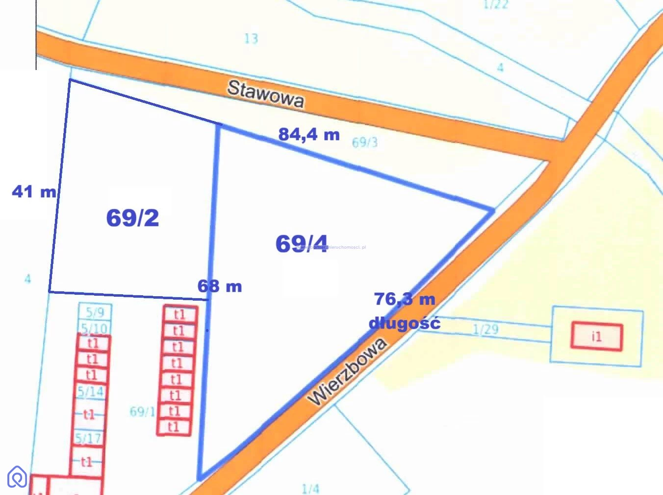 Sprzedaż 2 działek budowlanych o łącznej powierzchni 2988 m2 lub pojedynczo położonych przy ul. Wierzbowej gdzie jest pełna infrastruktura. Sprzedaż dla Dewelopera pod zabudowę szeregową.PODANA CENA SPRZEDAŻY BRUTTO Z VAT.