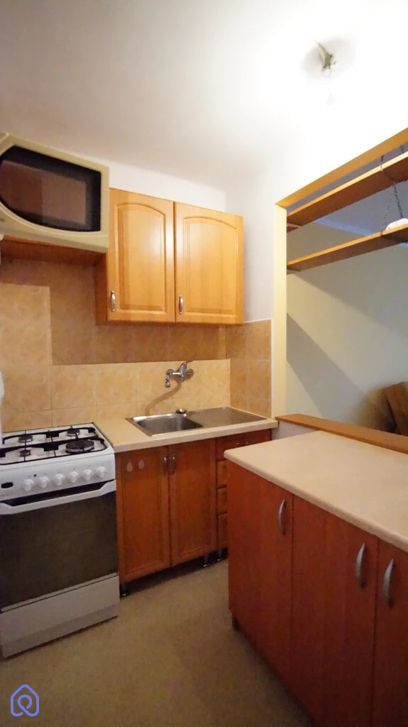 Mieszkanie składa się z pokoju z aneksem kuchennym i sypialni, przedpokoju, łazienki z WC .