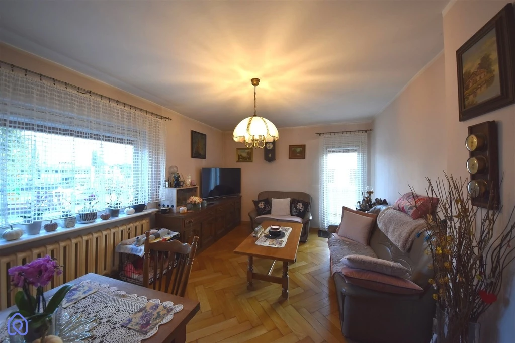 Mieszkanie składa się z trzech pokoi /salon z dużym balkonem/ , odrębnej kwadratowej kuchni, łazienki z wc oraz przedpokoju . Do mieszkania przynależą 2 piwnice oraz część poddasza o pow. ok.25 m2.