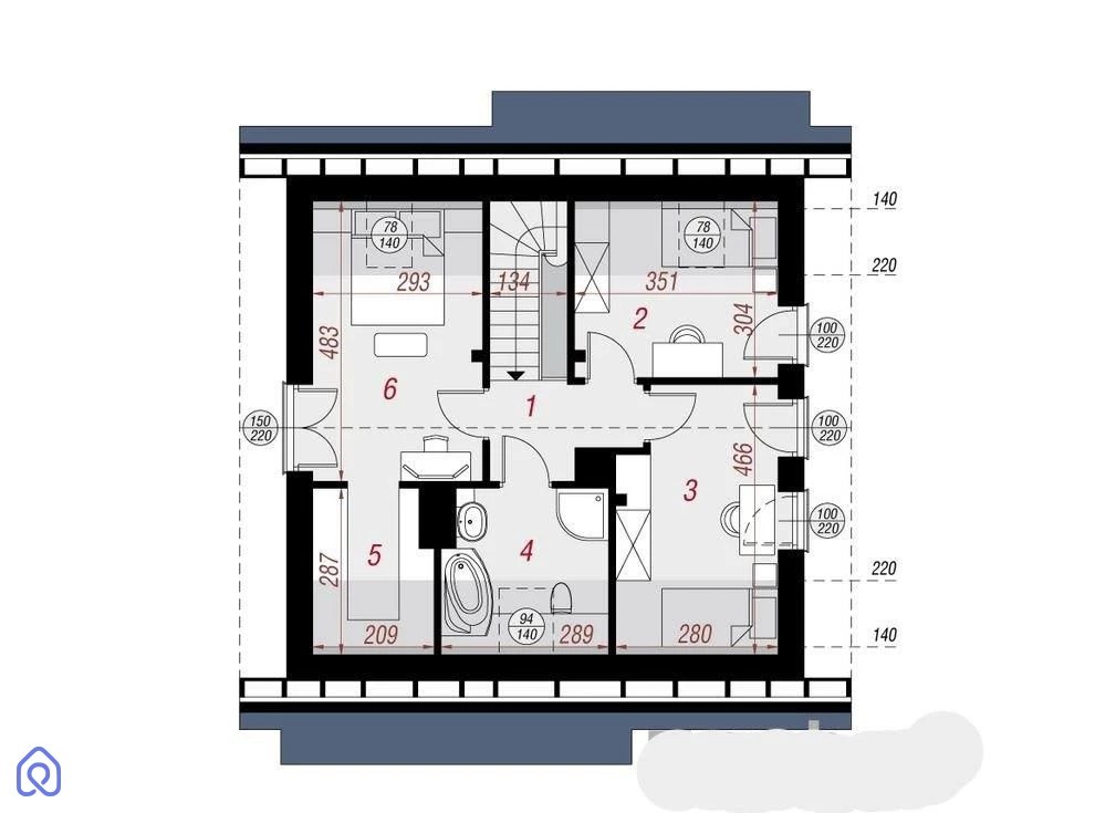 PODDASZE - 3 sypialnie, garderoba, łazienka, komunikacja. Plusem trzech sypialni jest wyjście na mały balkon z których podziwiać można okolicę.