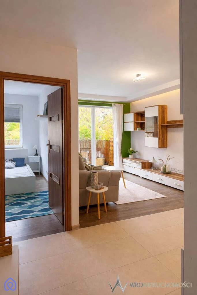 wysoki standard wykończenia w pełni umeblowane i wyposażone balkon z widokiem na zieleń winda w budynku zamknięte, zadbane osiedle świetna komunikacja miejska dostęp do miejsc postojowych na terenie osiedla Idealna propozycja dla osób poszukujących gotowego, wygodnego mieszkania w spokojnej, dobrze skomunikowanej części Wrocławia.