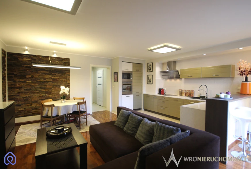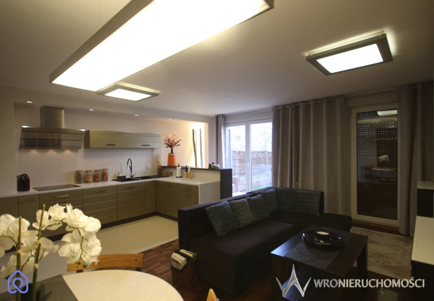 Nieruchomość została zaprojektowana z myślą o wygodnym, codziennym użytkowaniu – czytelny podział na strefę dzienną i prywatną sprawia, że mieszkanie jest bardzo funkcjonalne, a jednocześnie przytulne i estetyczne.