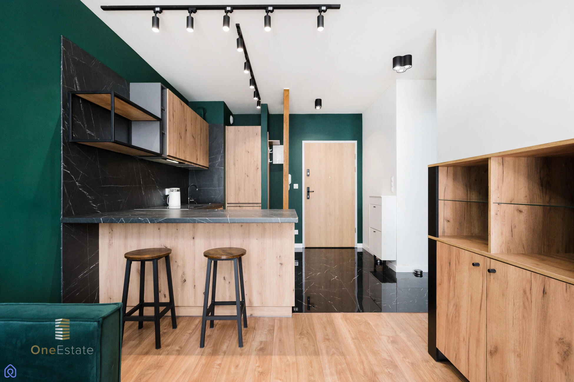 Mieszkanie urządzone w fajnym standardzie. Dużo szaf, wyposażona kuchnia, przyjemny, nowy budynek i okolica.