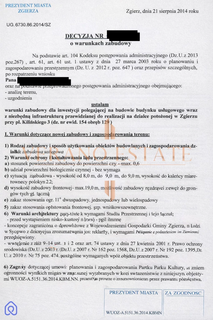 STAN PRAWNY decyzja o warunkach zabudowy – wydana