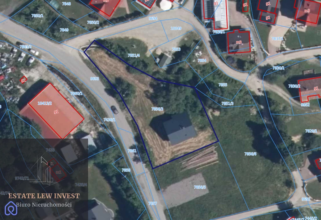 Powierzchnia działki to 14,36 ar. Graniczy z drogą główną, dojazd przez mostek.