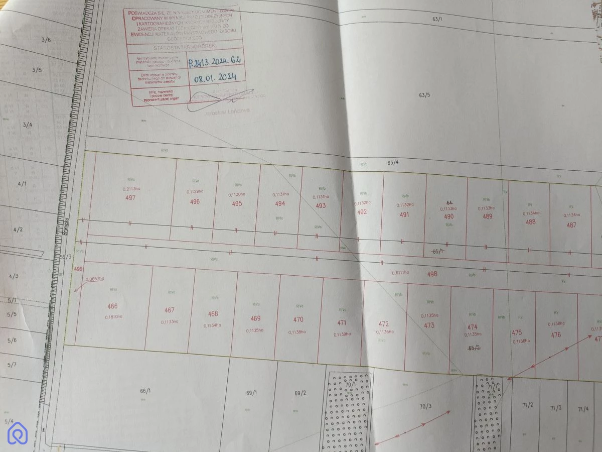 Możliwe jest także połączenie dwóch lub trzech parceli, co daje odpowiednio 2261 m² lub 3392 m². Wszystkie działki mają kształt prostokąta, a teren jest płaski i znajduje się na lekkim wzniesieniu.