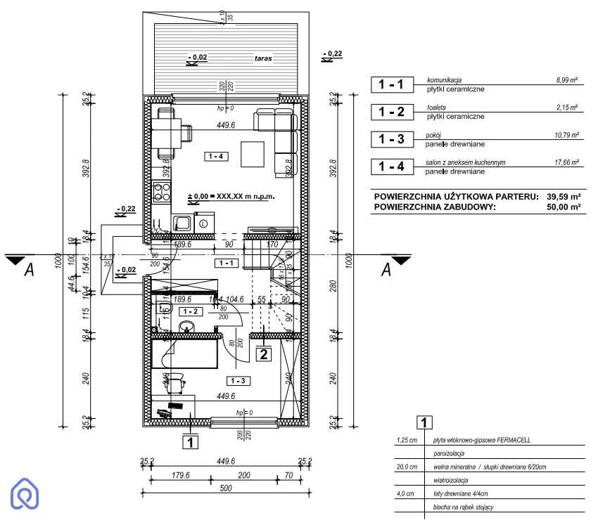 Domy wykonane są w nowoczesnej technologii prefabrykowanej trwałe, energooszczędne, całoroczne. Sprzedaż obejmuje stan surowy zamknięty, co pozwala na pełną personalizację wnętrz.