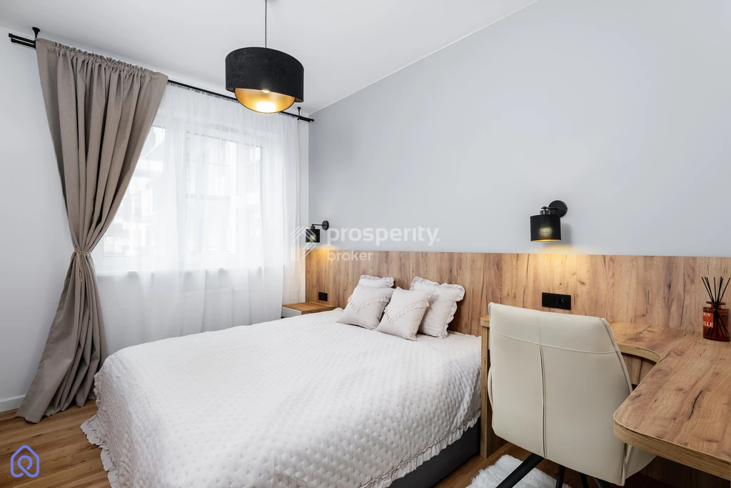 - w pełni wyposażona sypialnia z podwójny łóżkiem o szerokości 180 cm, biurkiem i garderobą