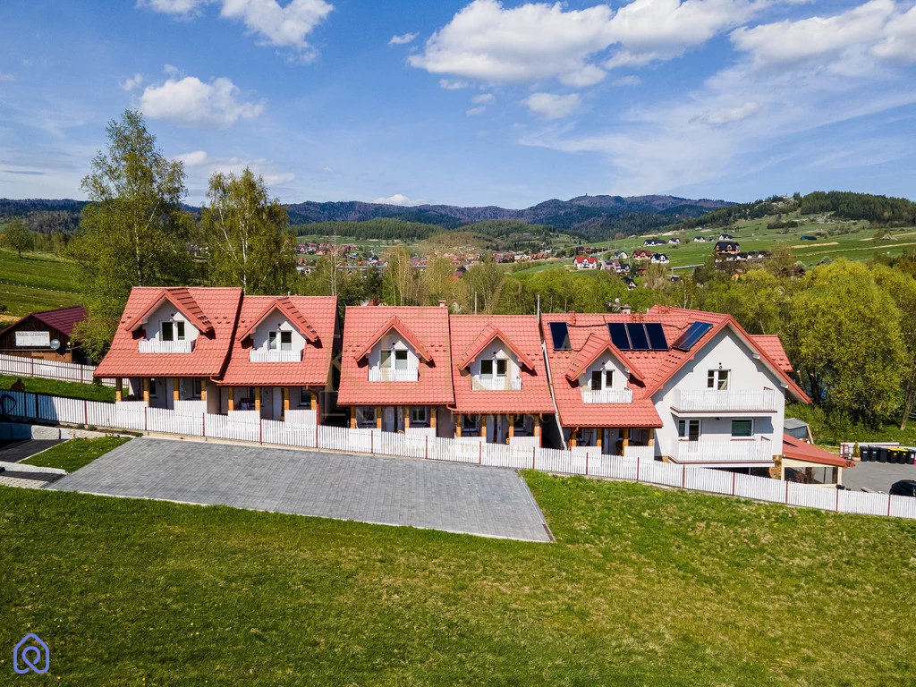 Oferujemy trzy domki 4 osobowe, dwa domki 5 osobowe oraz pokoje dla 2, 3 i 4 osób z balkonami.(razem 380m2) Każdy domek wyposażony jest w salon z TV, kuchnię, sypialnię oraz łazienkę. Dodatkowo, tarasy i balkony oferują przepiękne widoki na Tatry, jezioro czorsztyńskie oraz zamki w Czorsztynie i Nidzicy.