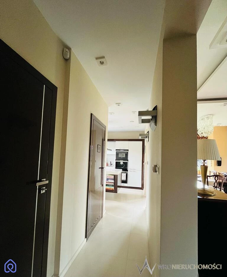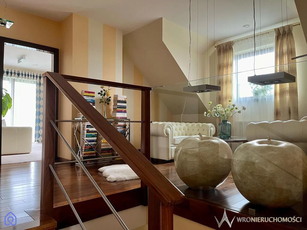 Wysoki standard wykończenia: lite drewno (orzech amerykański) na podłogach, włoska armatura i ceramika, kino domowe, rolety antywłamaniowe, system alarmowy i monitoring z zapisem w chmurze.