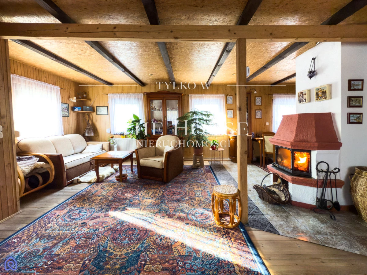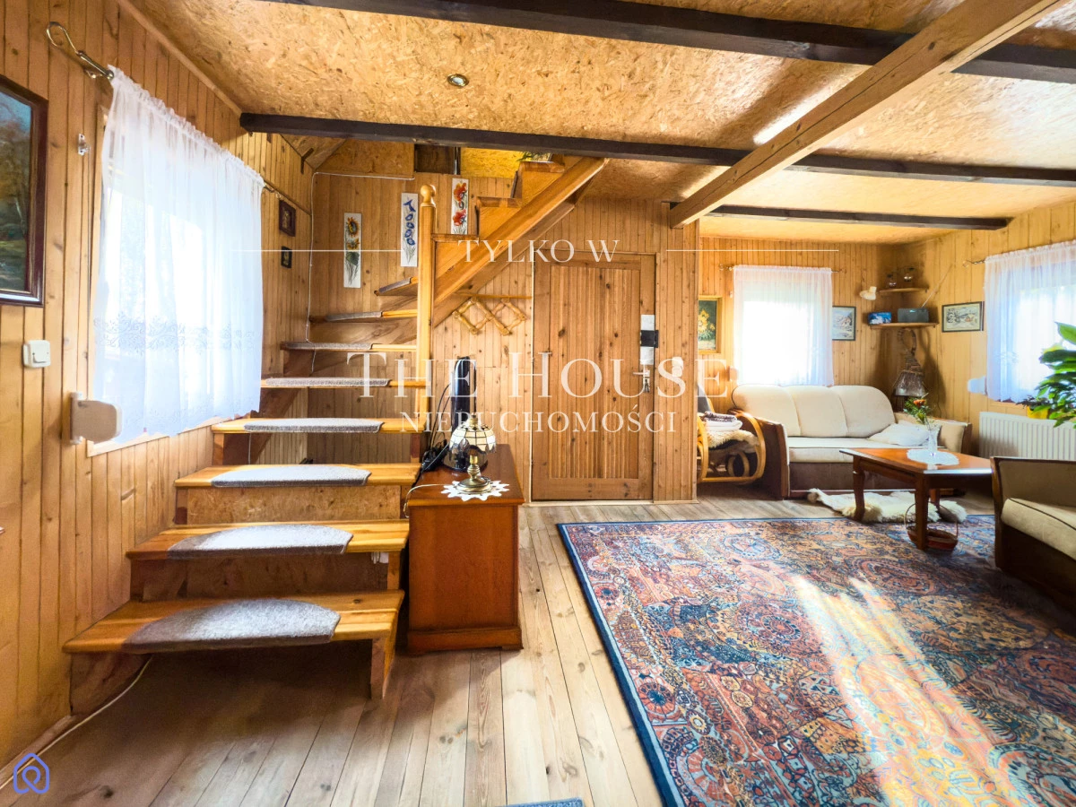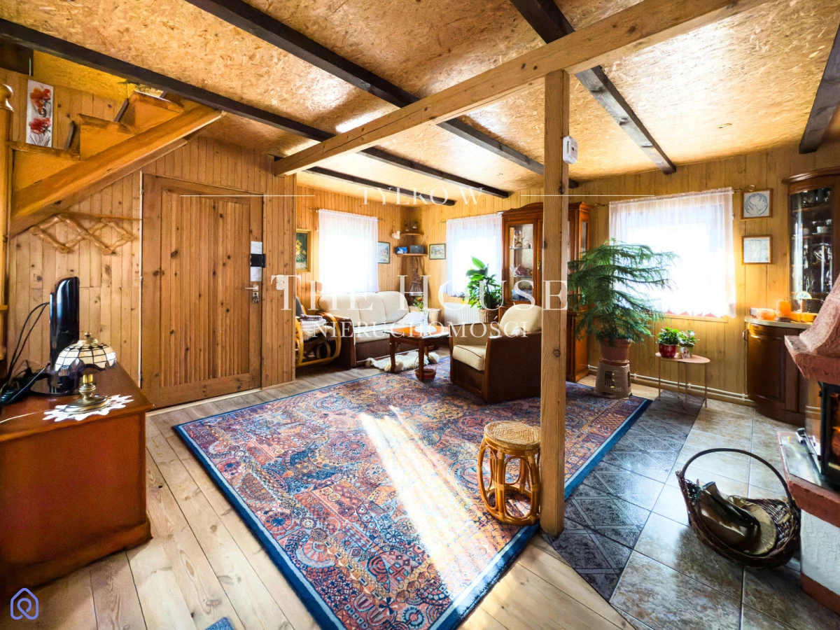 Dom o powierzchni 83 m² znajduje się na przestronnej działce (budowlana) 606 m² z licznymi nasadzeniami. Dwa lata temu przeprowadzono remont: dach, łazienka, instalacja wodna i elektryczna, dzięki czemu obiekt jest użytkowany całorocznie. Dom o konstrukcji drewnianej, wyposażony w rolety oraz instalację alarmową. Ogrzewanie kominkowe oraz w razie potrzeby elektryczne z termostatem umożliwiające komfortowe użytkowanie przez cały rok. Do dyspozycji Właścicieli jest wiata samochodowa wraz z drewutnią do sezonowania drewna. Posesja ogrodzona, zadbany ogród z licznymi nasadzeniami.