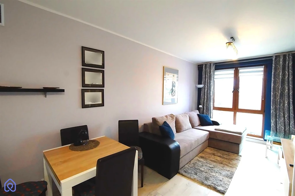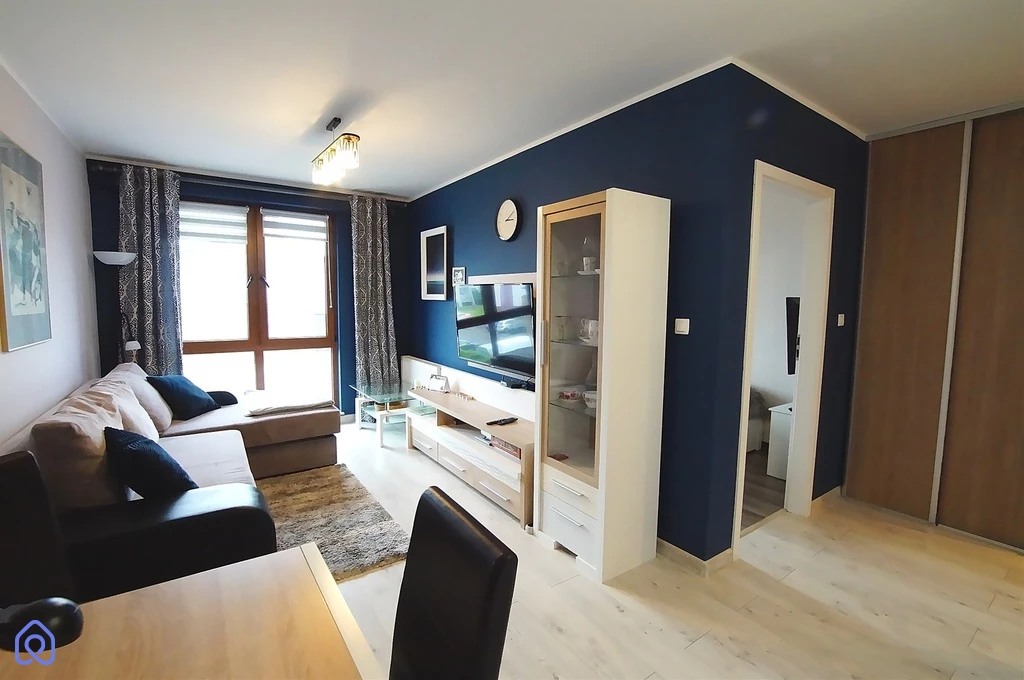 Mieszkanie w standardzie do wprowadzenia się. Kompletnie umeblowane, kuchnia w zabudowie wraz ze sprzętem AGD (lodówko-zamrażalka, zmywarka, płyta elektryczna, piekarnik elektryczny), łazienka z wc, wanną, pralką. Lokal usytuowany na drugim piętrze, w niskiej zabudowie z 2015 roku. Budynek wyposażony w windę, w pomieszczenie na rowery. Ogrzewanie oraz ciepła woda z sieci miejskiej.