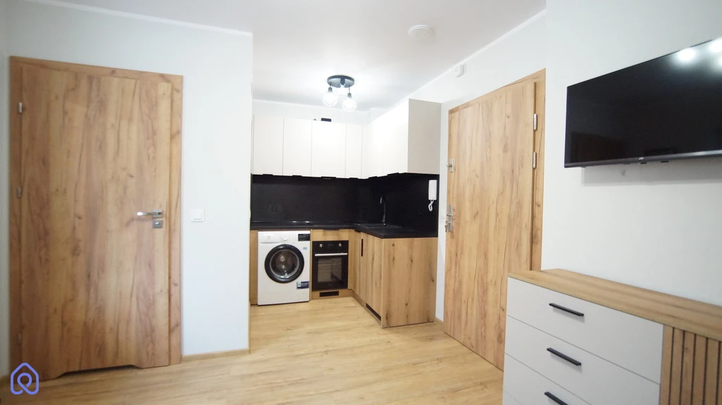 Mieszkanie kompleksowo wyposażone : pokój dzienny umeblowany ze sprzętem tv, kuchnia w zabudowie + agd (płyta , piekarnik, zmywarka, pochłaniacz, pralka ).