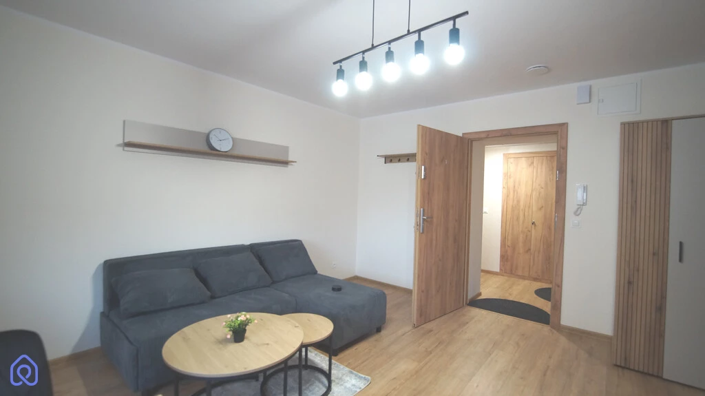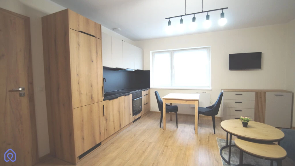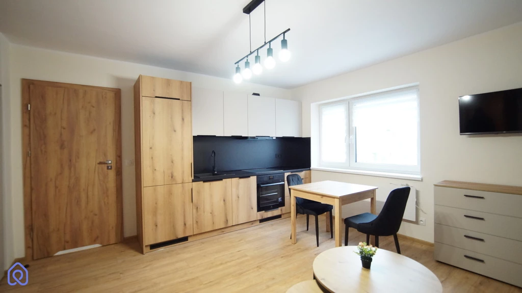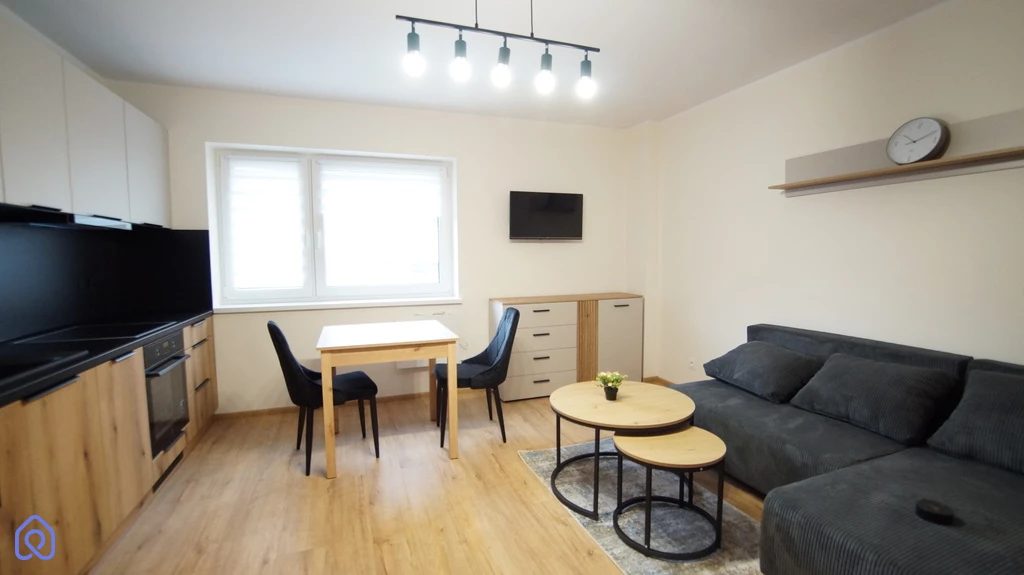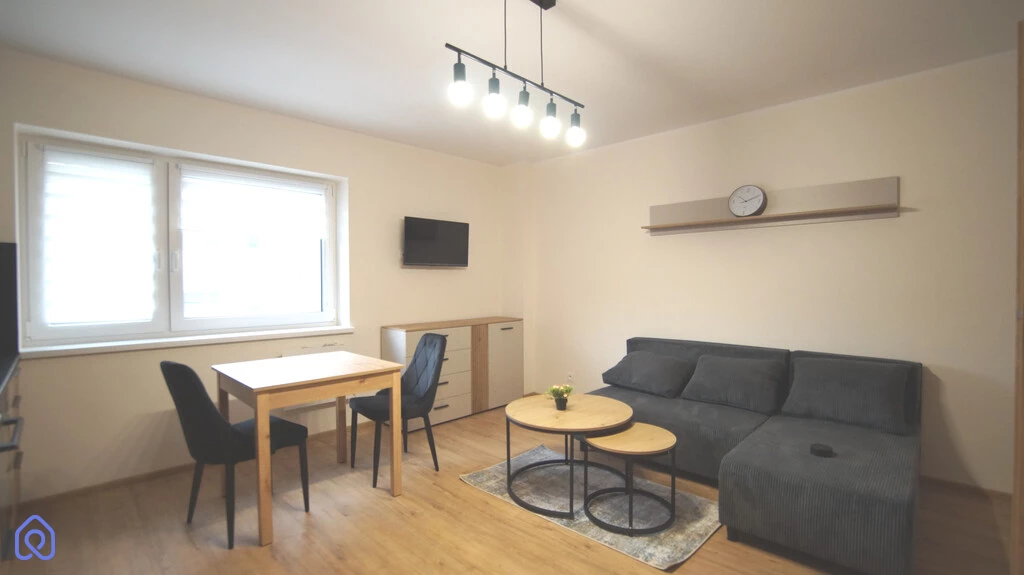 Mieszkanie kompleksowo wyposażone : pokój dzienny umeblowany ze sprzętem tv, kuchnia w zabudowie + agd (płyta , piekarnik, zmywarka, pochłaniacz, pralka ).