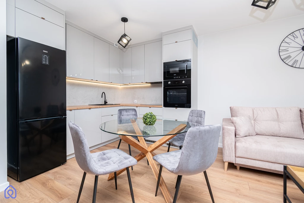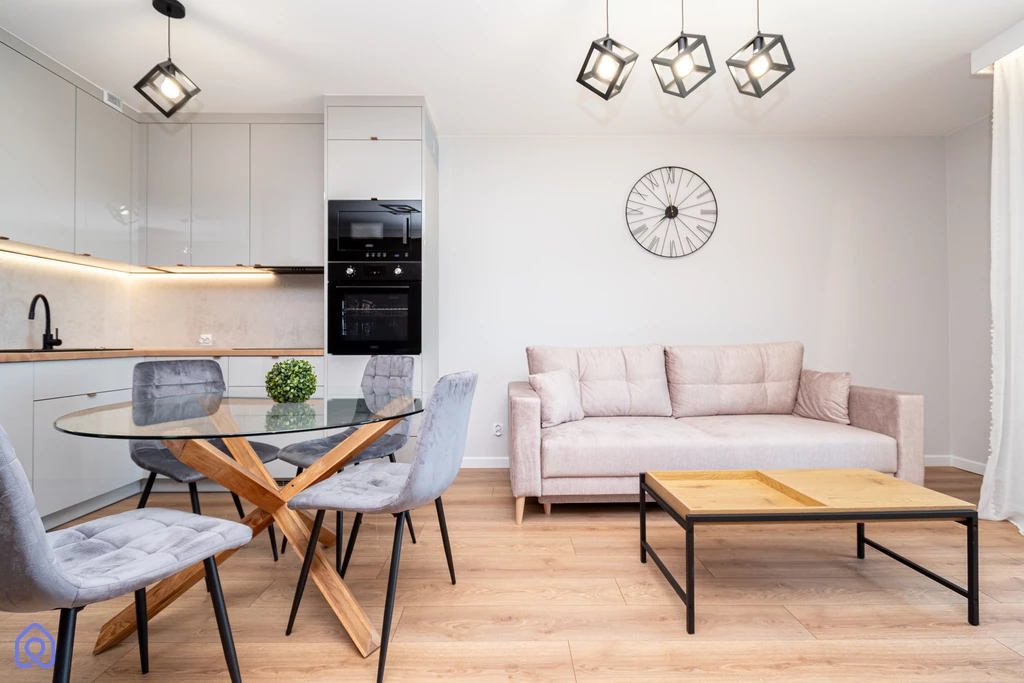 - przestronny salon z aneksem kuchennym oraz wyjściem na balkon - urządzone z myślą o funkcjonalności i pełnym wykorzystaniu przestrzeni, w pełni wyposażone w niezbędne sprzęty AGD;