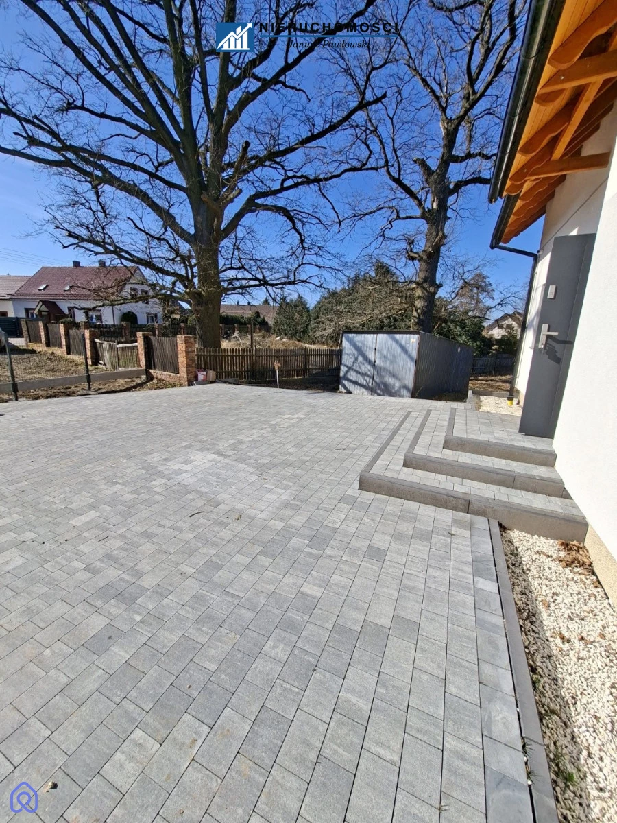 taras, utwardzony podjazd, ogrodzona posesja, elektryczna brama wjazdowa, system alarmowy, videomonitoring, spokojna, kameralna okolica.