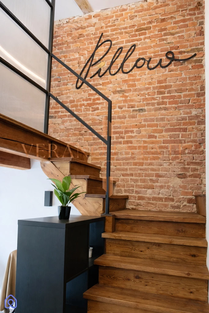 Wnętrze zaprojektowano w stylu eklektycznym z elementami loftowymi, łącząc historię z nowoczesnością.