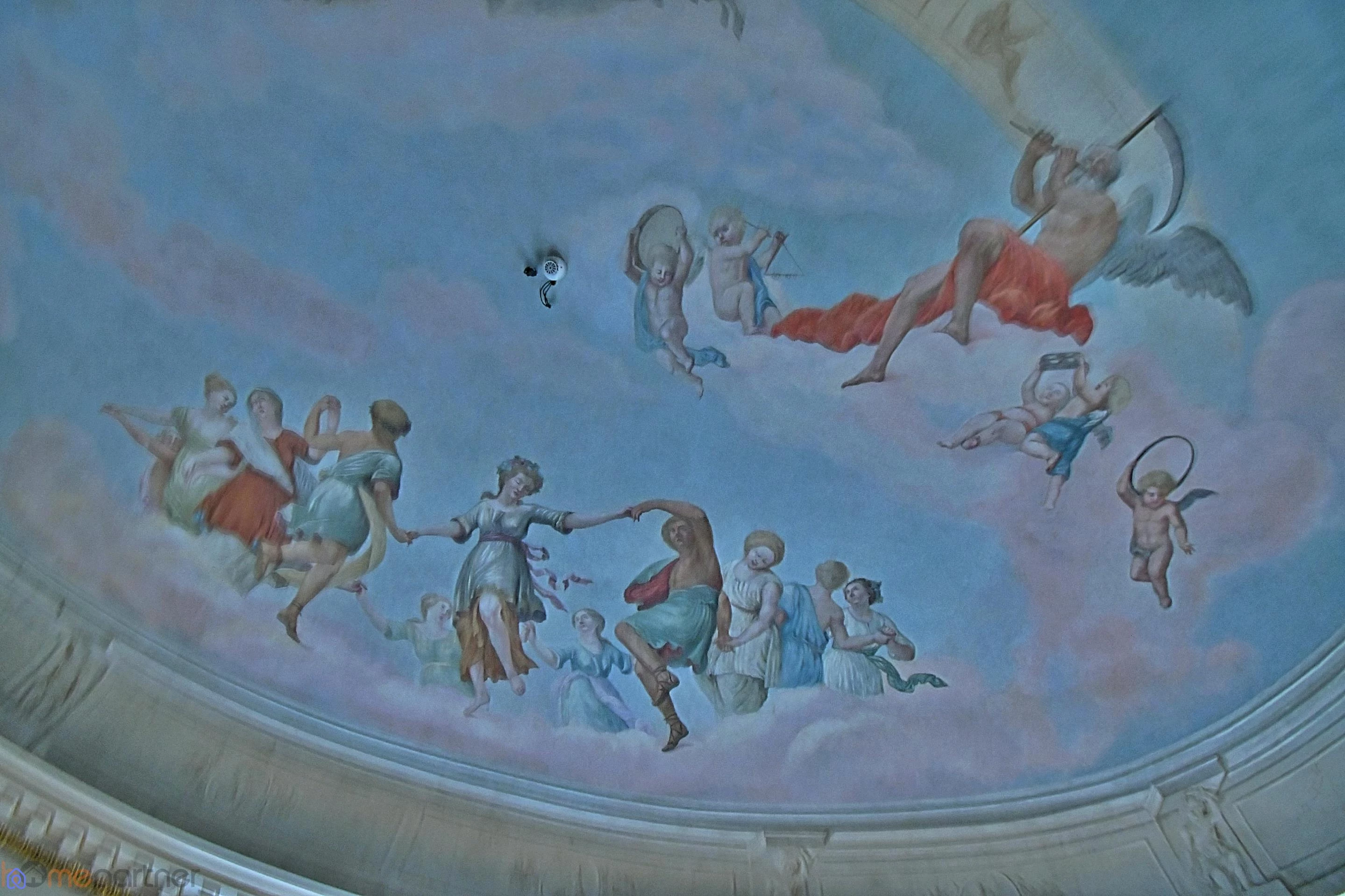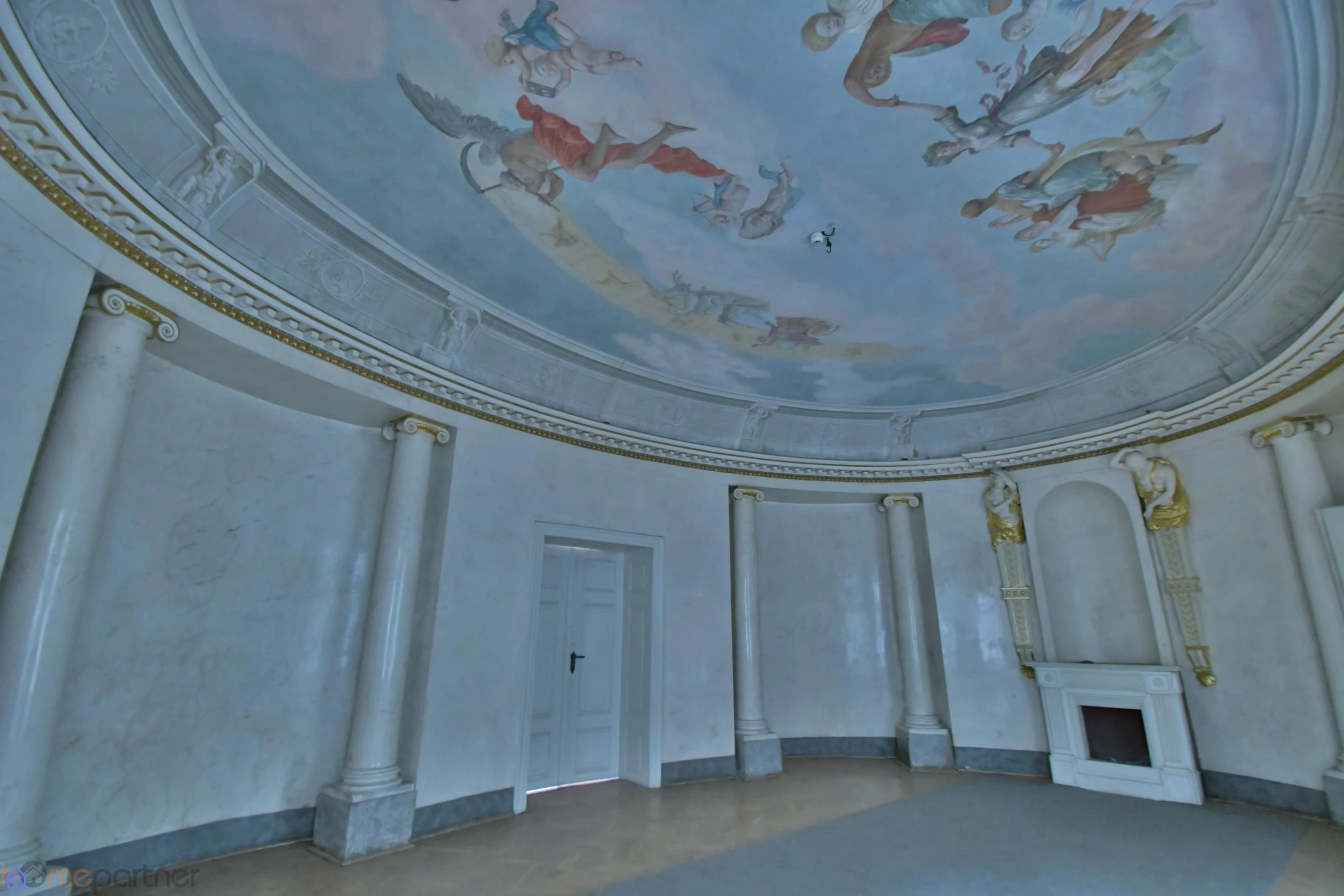 The interiors of the former palace show a complex layout of rooms that changes during the subsequent stages of expansion and changes in the functions of individual rooms. In the building, the original layout of suite rooms and representative interiors have been preserved: a columned hall, an oval staircase with a palace layout, with an extensive system of beautifully preserved stairs, and an oval study with a fireplace, plafond and rich decorations in the spirit of Berlin Classicism. Shafts and casings of technical elevators also survived. Wooden window joinery. Entrance doors and gates are decorated with carved floral ornaments. In some rooms on the first floor there are ceilings with stucco decorations.