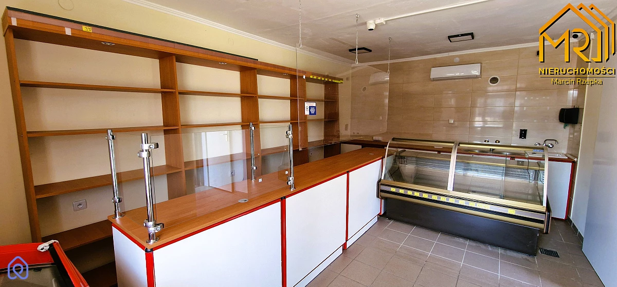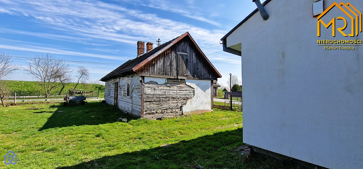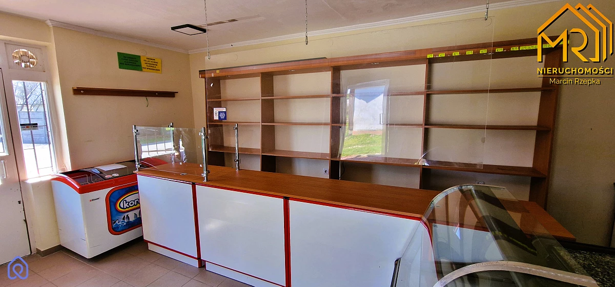 Budynek mieszkalny w stanie do rozbiórki, pozostałe w stanie bardzo dobrym i dobry. Powierzchnia budynku handlowo-usługowego to około 40 m2, w skład pomieszczeń wchodzi: sala sprzedażowa, pomieszczenie socjalne, ubikacja i mały korytarz. Ocieplony z zewnątrz, pokryty blachą. Budynek gospodarczy w połowie zaadoptowany na część mieszkalną, łazienka z prysznicem. Istnieje możliwość zmiany jego sposobu użytkowania. Jego powierzchnia to około 60 m2.