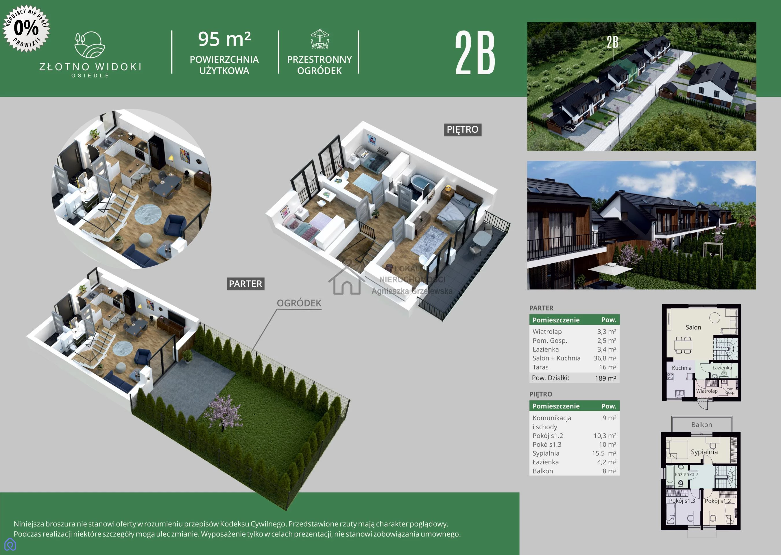 Złotno Widoki to kameralna inwestycja komfortowych domów w zabudowie bliźniaczej i szeregowej o powierzchni ok 95m2 z ogródkami i m parkingowymi. Funkcjonalny i przemyślany rozkład pomieszczeń, doskonale zaprojektowana przestrzeń stref dziennych i nocnych wraz z własnymi ogródkami każdego domu pozwala cieszyć się życiem bez dodatkowych kosztów i czasu poświęconego sprzątaniu niewykorzystanej przestrzeni. Tarasy oraz wiaty garażowe z pomieszczeniami gospodarczymi dopełniają funkcjonalności większości domów.