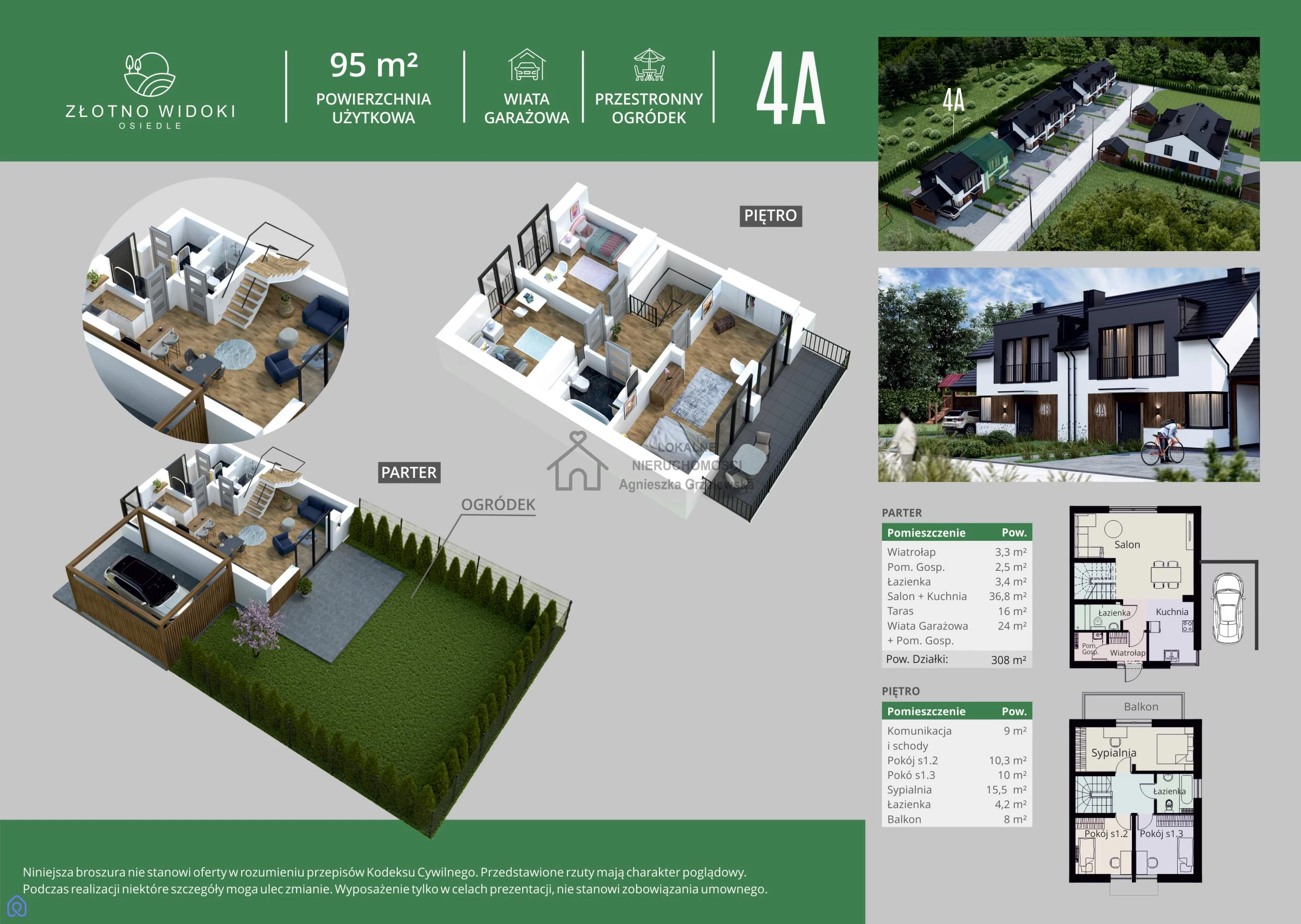 Budynek w zabudowie bliźniaczej: dom 4A pow. ok 95m2 działka: 308m2 WST. REZERWACJA Budynek w zabudowie bliźniaczej: dom 4B pow. ok 95m2 działka: 336m2 cena: 869 000zł plus wiata z pom. gosp. 20tys Budynek w zabudowie szeregowej: dom/segment narożny/ 2A pow. ok 95m2 działka: 303m2 REZERWACJA Budynek w zabudowie szeregowej: dom/segment narożny/ 2C pow. ok 95m2 działka: 305m2 cena: 869 000zł plus wiata z pom. gosp. 20tys Budynek w zabudowie szeregowej: dom/segment narożny/ 1A pow. ok 95m2 działka: 325m2 REZERWACJA Budynek w zabudowie szeregowej: dom/segment narożny/ 1C pow. ok 95m2 działka: 301m2 REZERWACJA